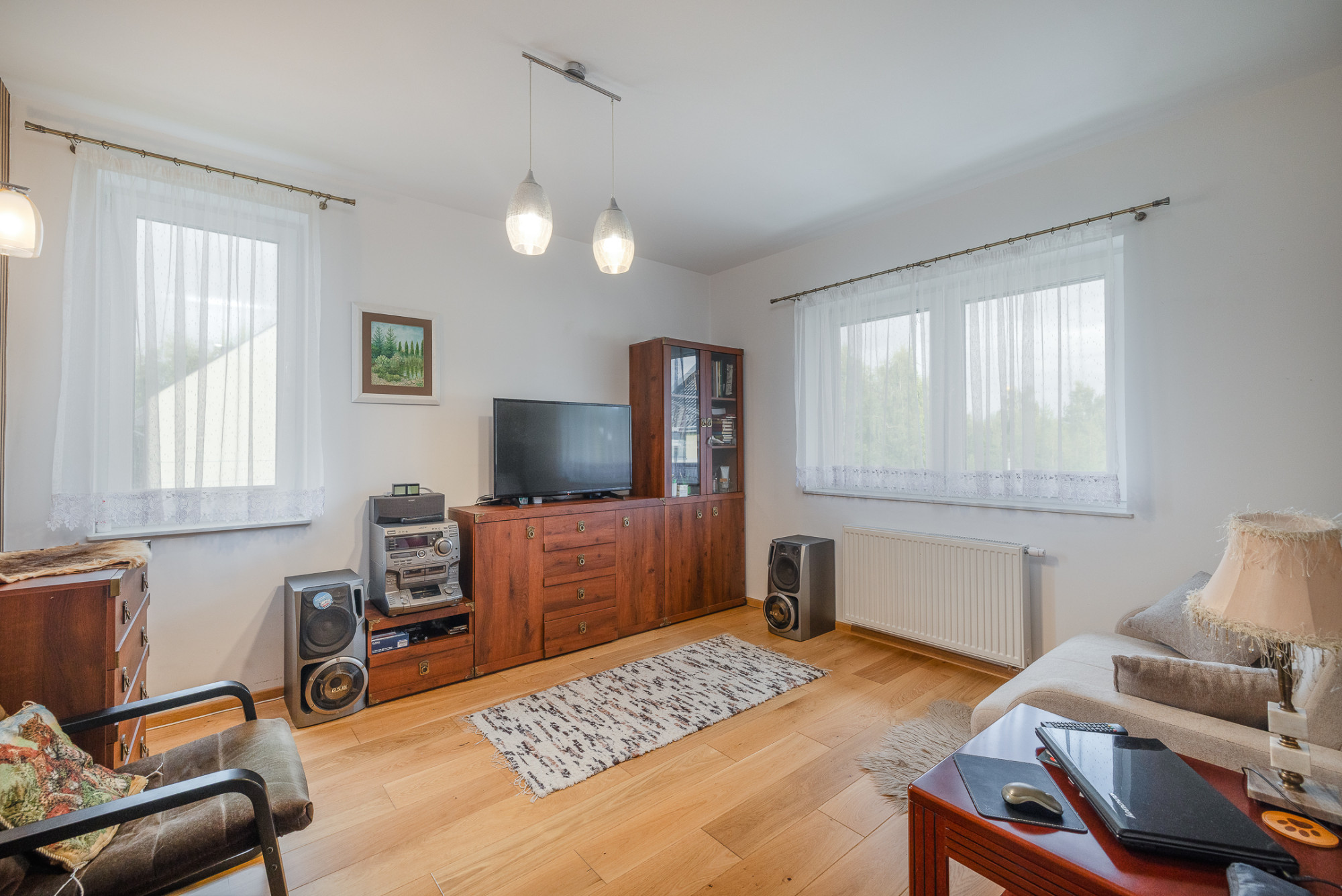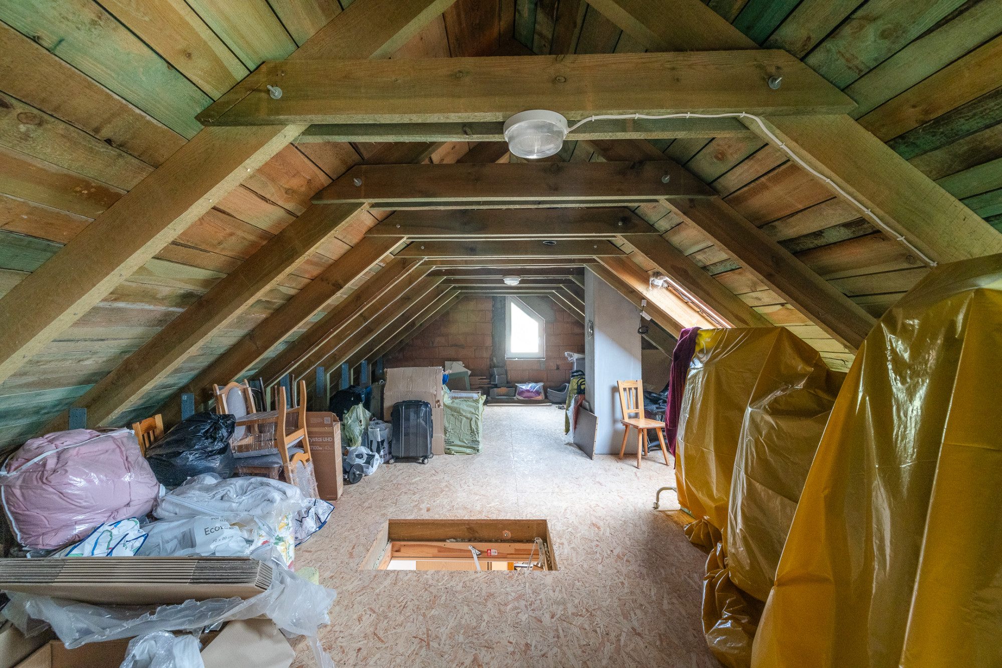 Poddasze jest przestronne i jasne dzięki zamontowanym oknom – 2 dachowe i 1 w ścianie szczytowej.