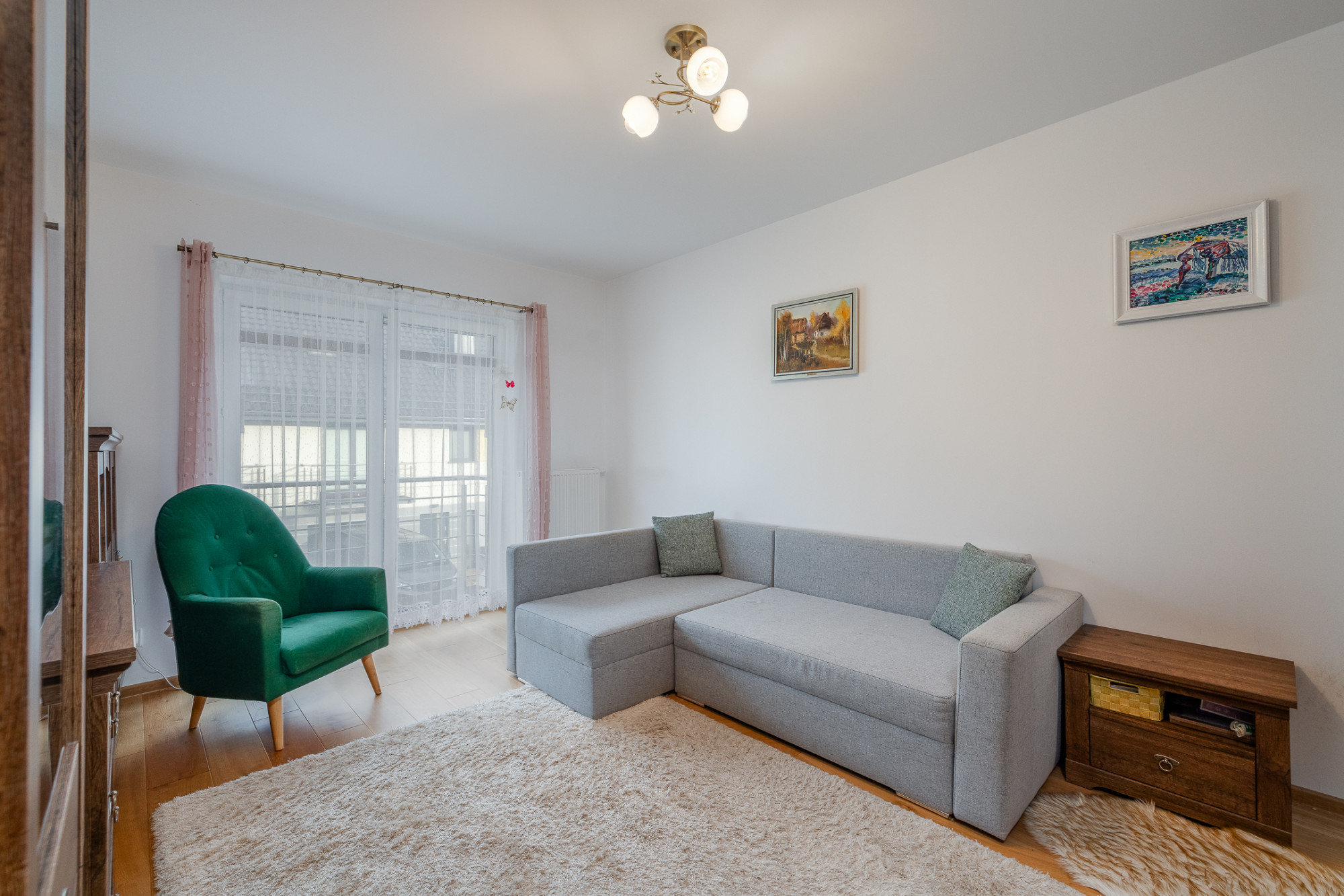 – zabudowy w cenie – kuchnia ze sprzętem AGD, kuchenka gazowa, szafy wnękowe – 2 w pokojach i 1 w korytarzu