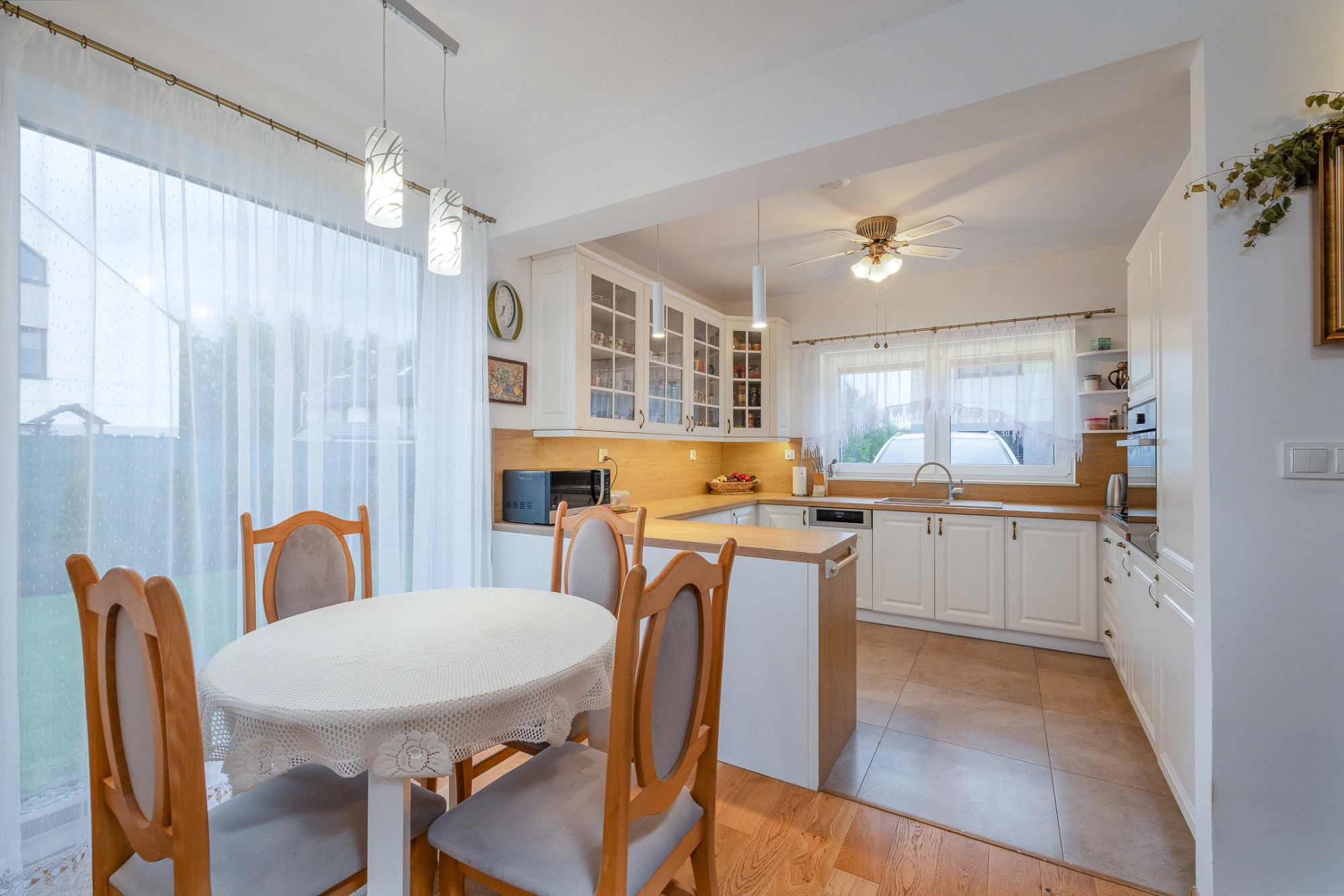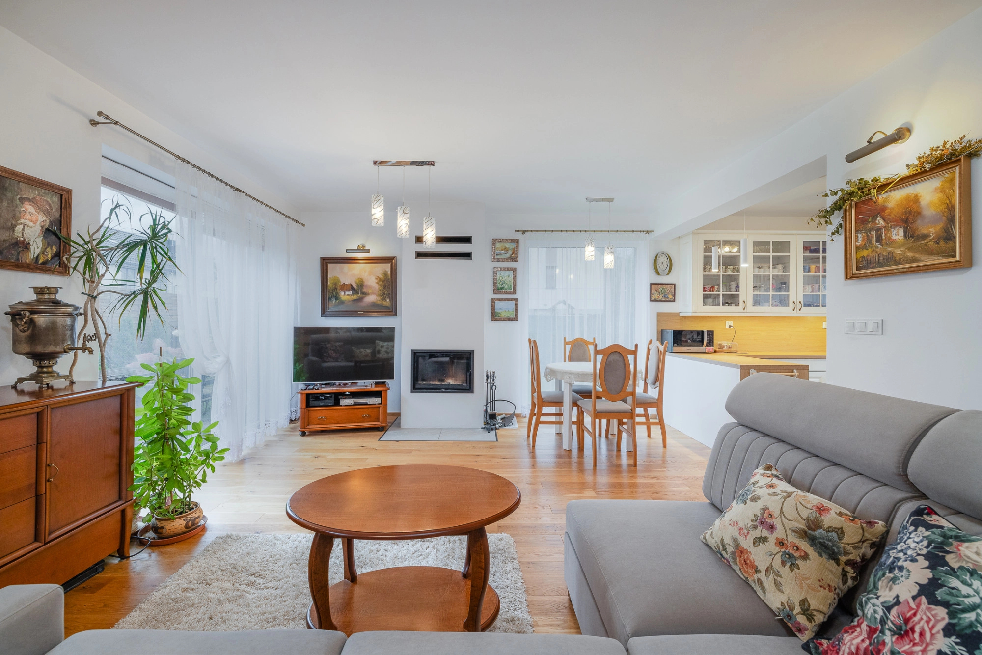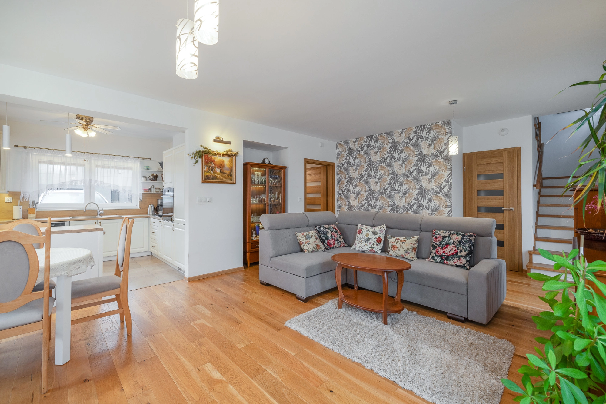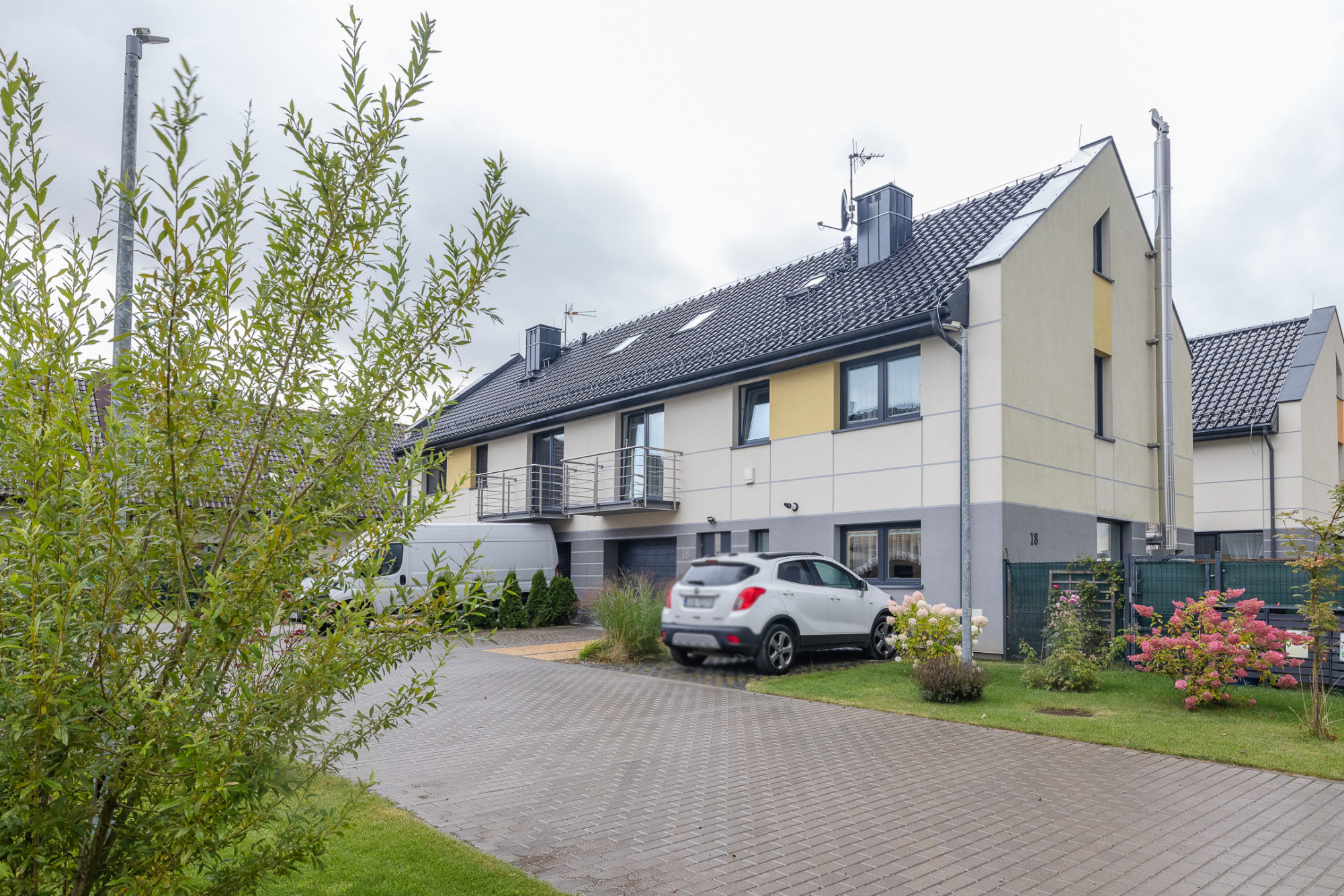 Na sprzedaż nowoczesny dom-bliźniak z 2021r. o powierzchni użytkowej 136m2, z tarasem, ogrodem i kominkiem. Dom jest funkcjonalny, wykończony w klasycznym stylu, z wysokiej jakości materiałów.