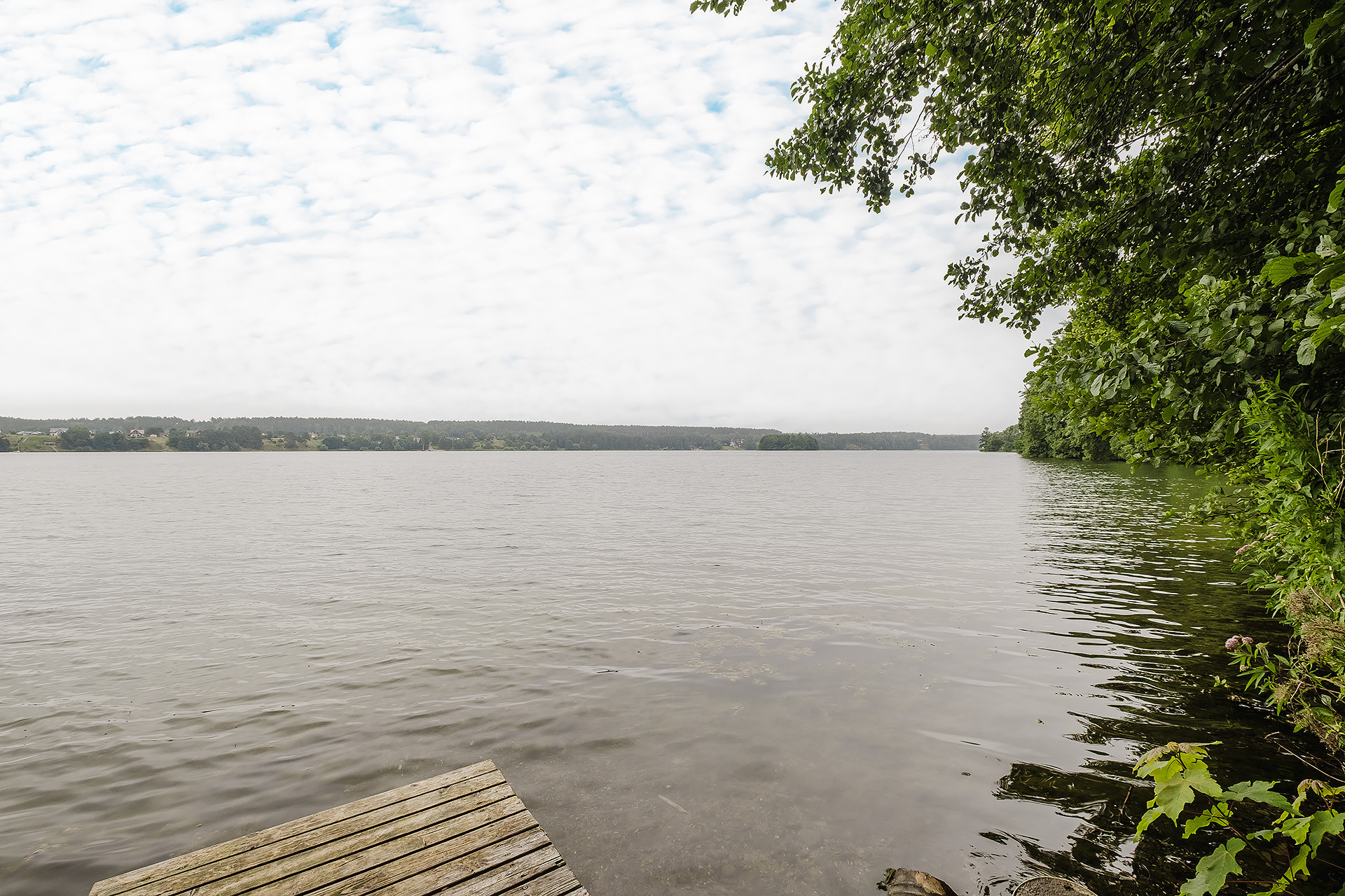 Słoneczna ogrodzona i zagospodarowana działka otoczona lasem w pierwszej linii zabudowy od jeziora..