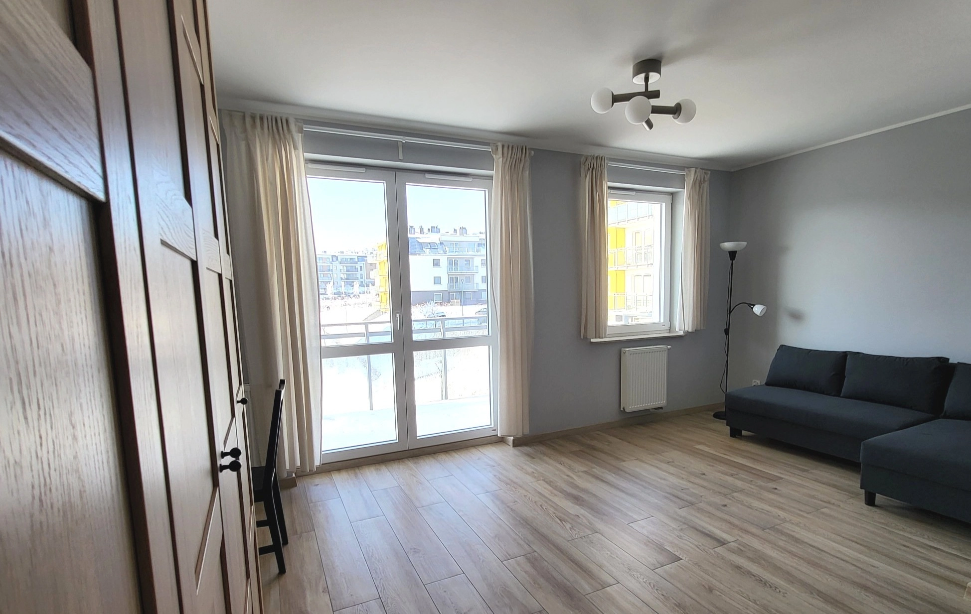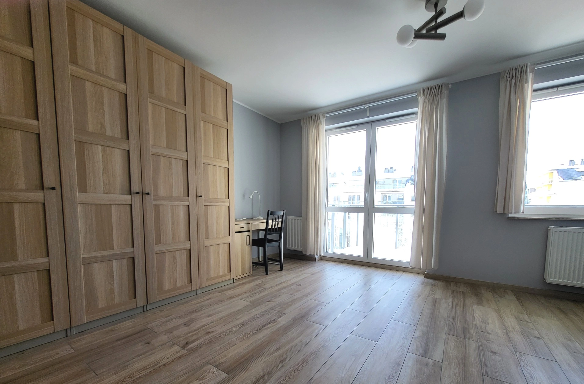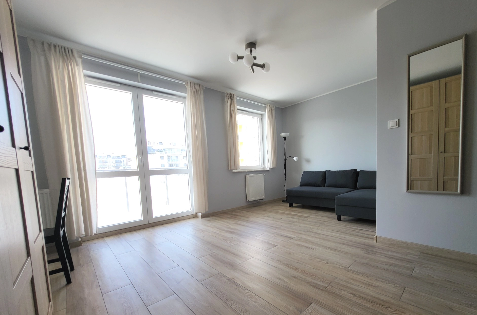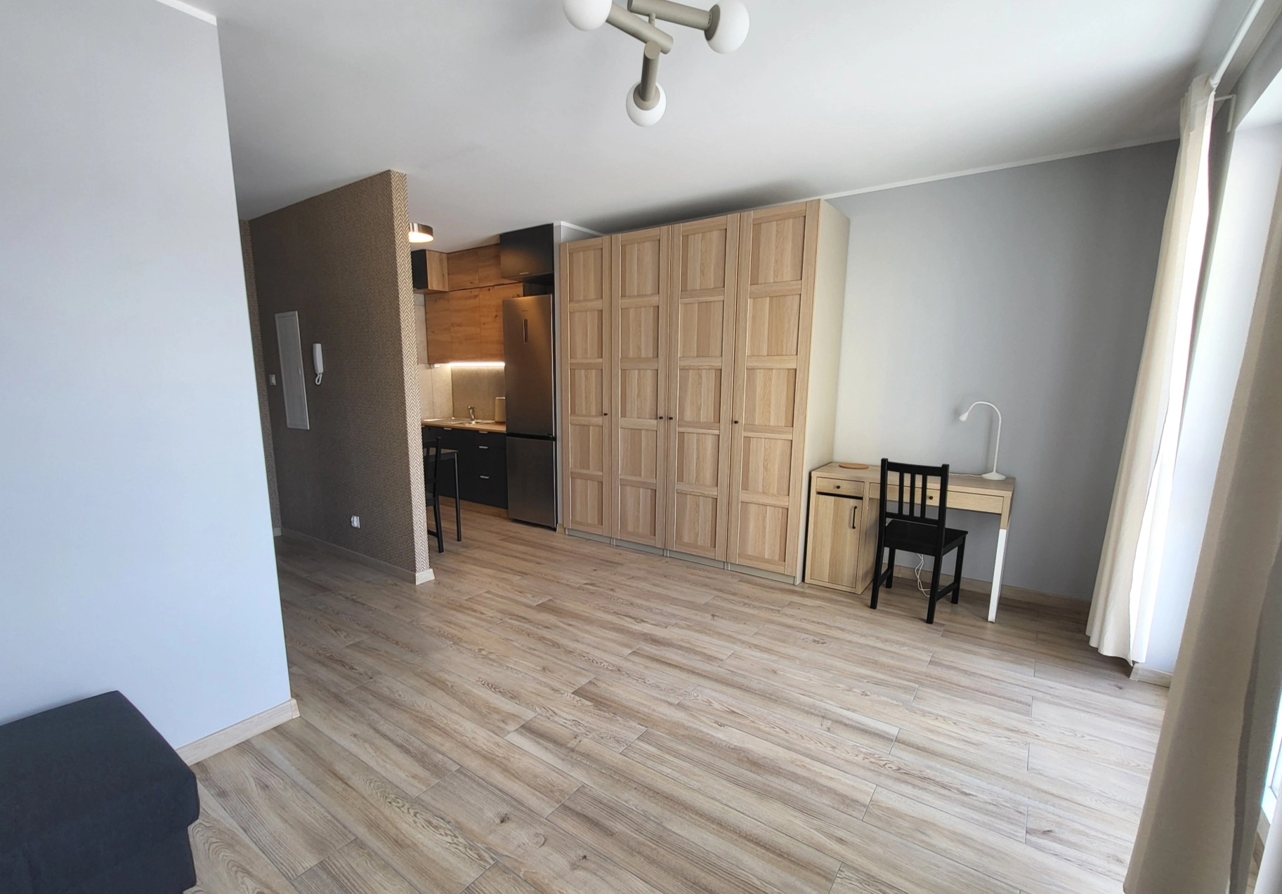 – Pokój z pojemną szafą, sofa, biurko.