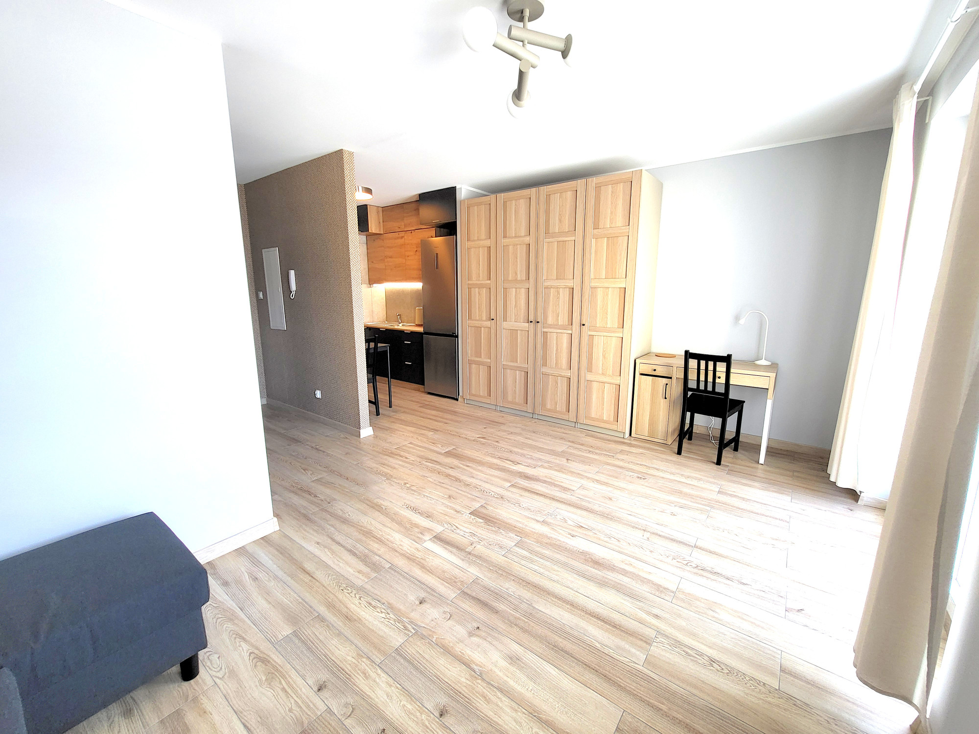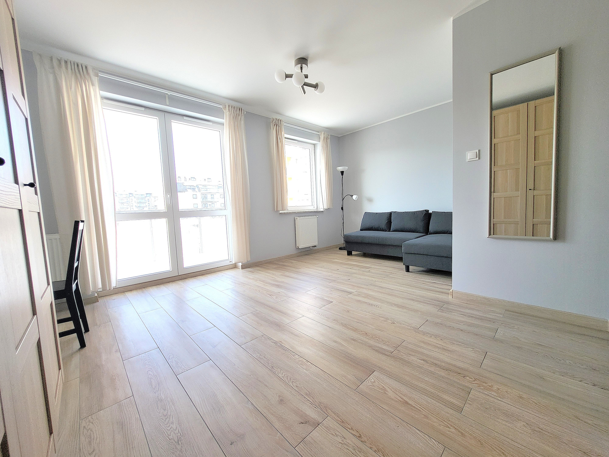 – Pokój z pojemną szafą, sofa, biurko.