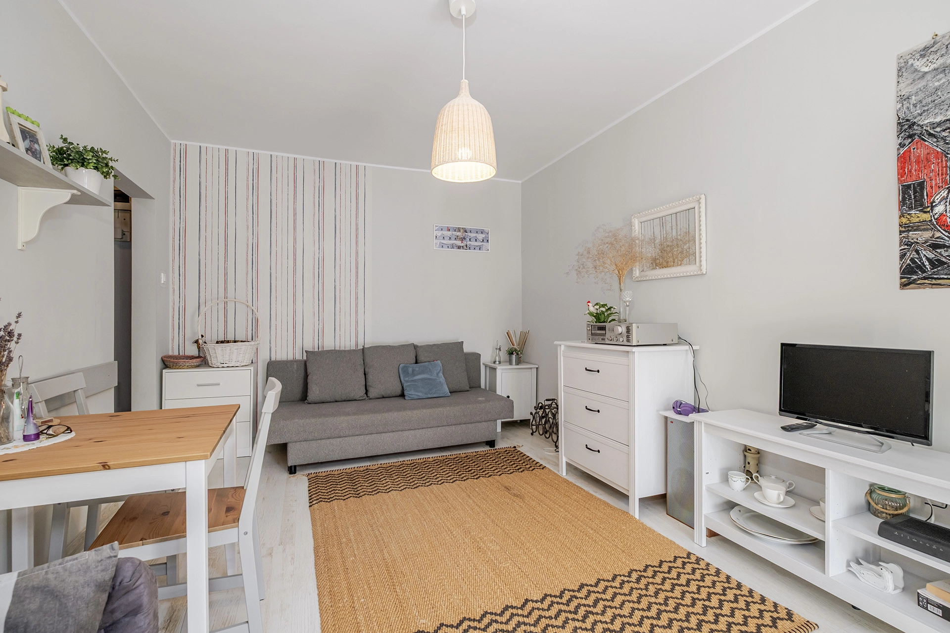 Kawalerka po przeprowadzonym pewien czas temu generalnym remoncie. Wymieniona instalacja elektryczna, przytulne i w pełni wyposażone. Ze względu południowo-zachodnią ekspozycję mieszkanie jest słoneczne i ciepłe. Powierzchnia użytkowa mieszkania to 28,99 m2 i składają się na nią: