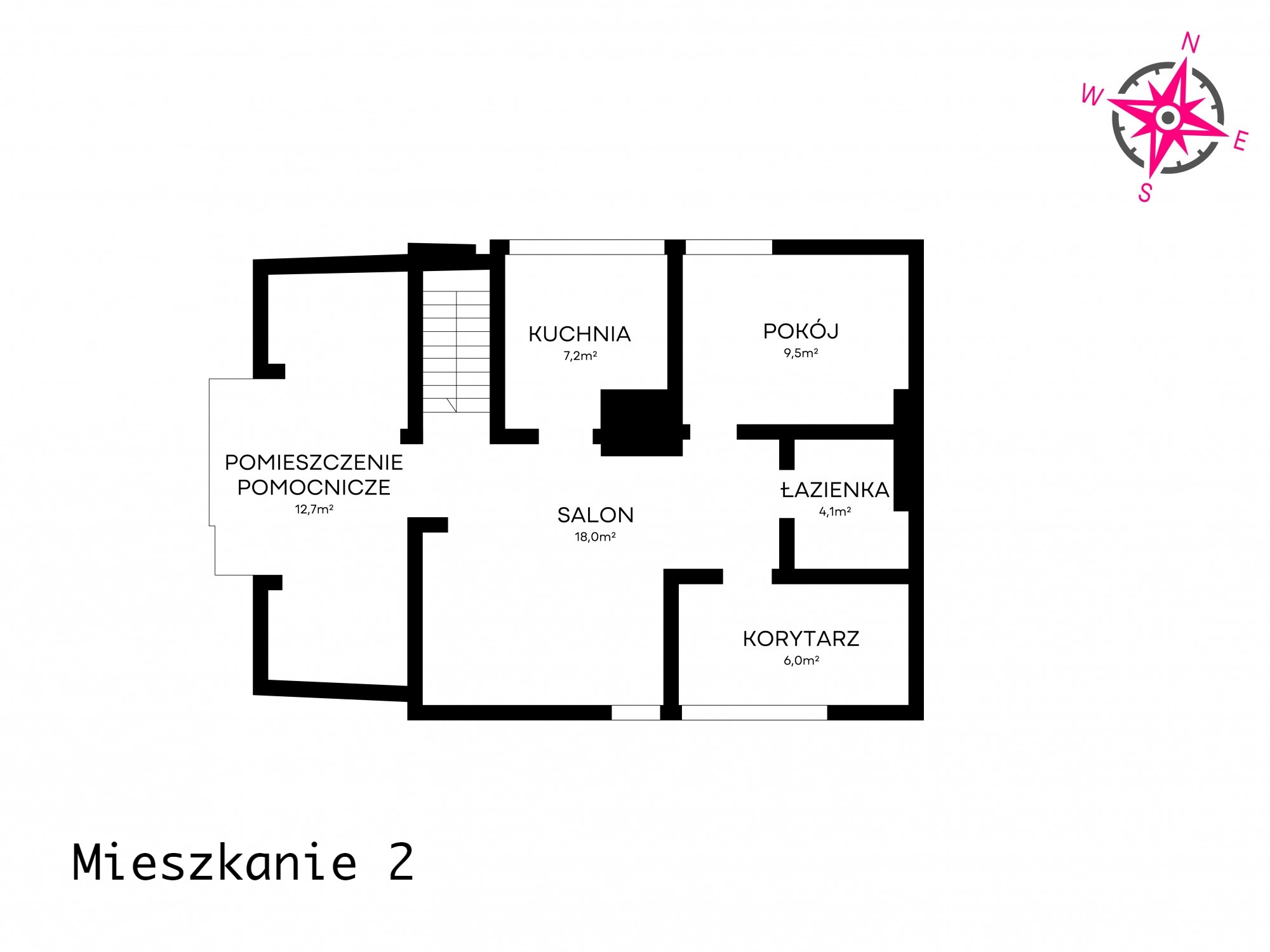 Mieszkanie Nr 2 o pow. ok. 62 m2 (w zależności od miejsca posadowienia drzwi dzielących oba mieszkania) z następującymi pomieszczeniami