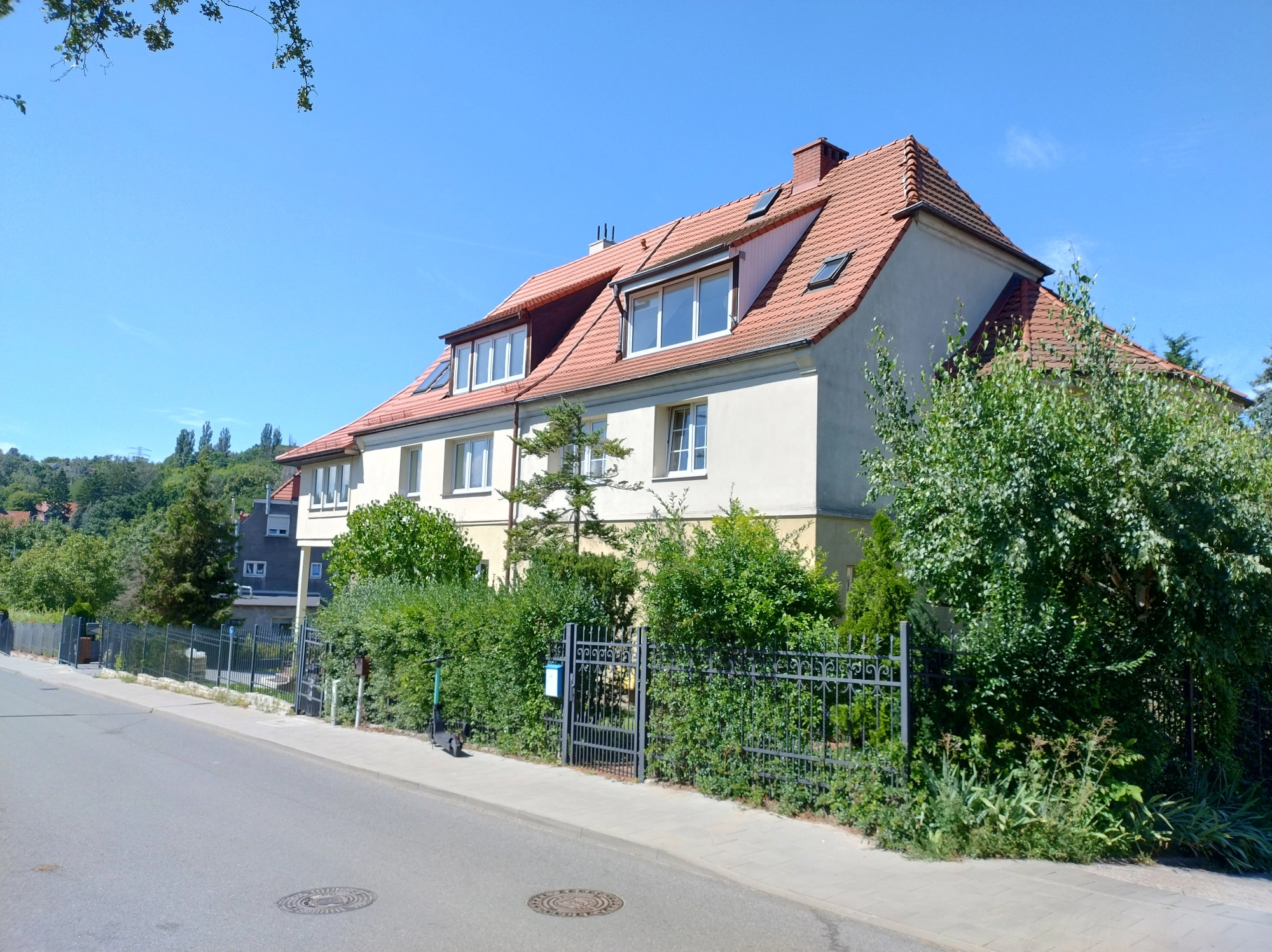 To przedwojenna kamienica wybudowana z cegły, pokryta dachówką ceramiczną, w zabudowie bliźniaczej znajdująca się w Gminnej Ewidencji Zabytków. Część budynku, w której znajduje się sprzedawana nieruchomość została poddana całkowitemu remontowi kapitalnemu, wraz z wymianą wszystkich instalacji, okien, tynków, elewacji, schodów, poszycia dachowego oraz opierzenia.  Wejście do mieszkań od strony wspólnego ogrodu. Dodatkowym atutem jest ogrodzenie całej posesji, na której znajdują się miejsca postojowe dla mieszkańców.