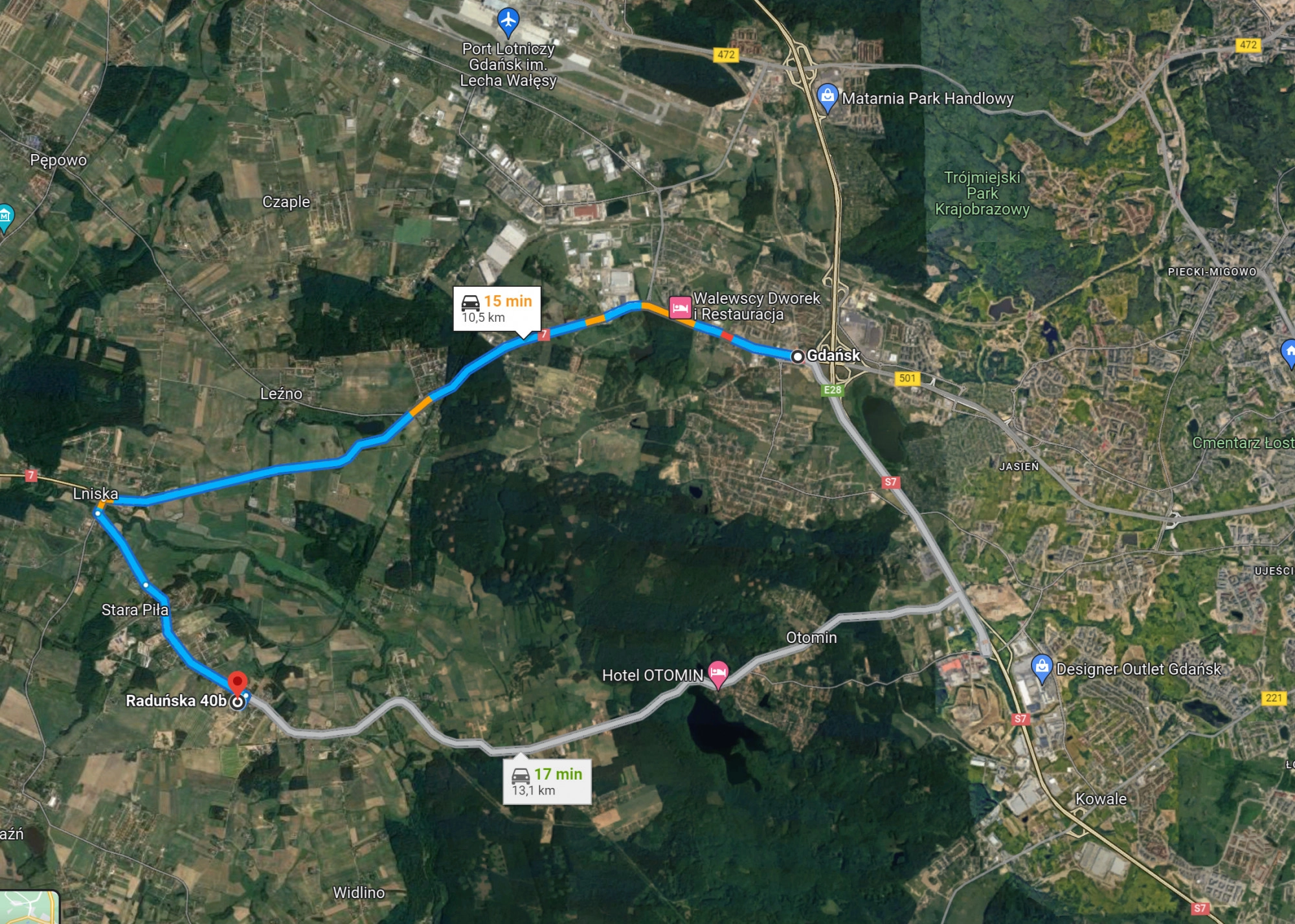 10km do obwodnicy trójmiasta (węzeł Karczemki)