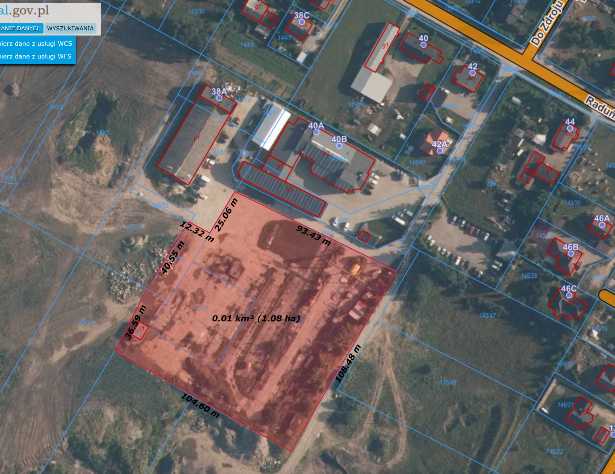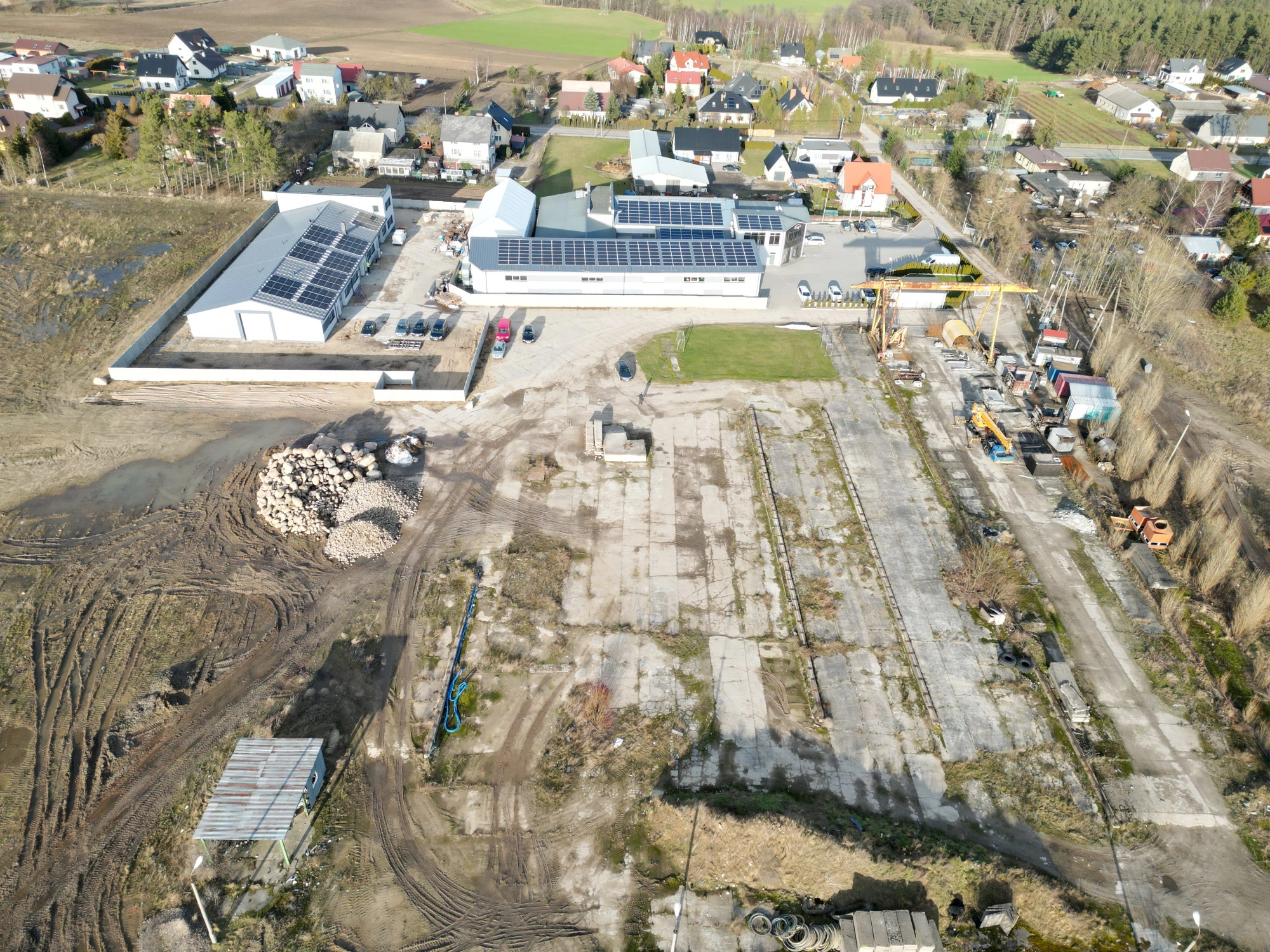 Działki o łącznej powierzchni ok 1,08ha (10 800m2)  utwardzony przemysłowymi grubymi płytami betonowymi.