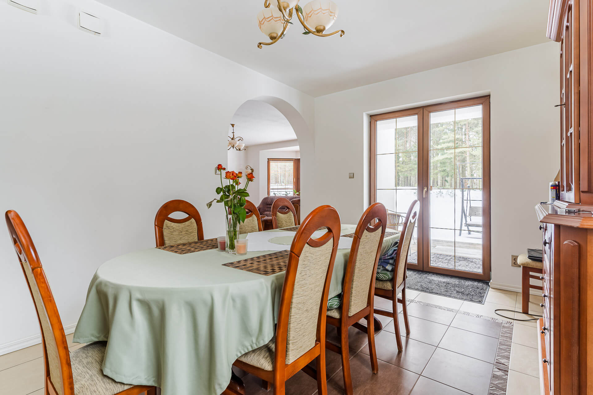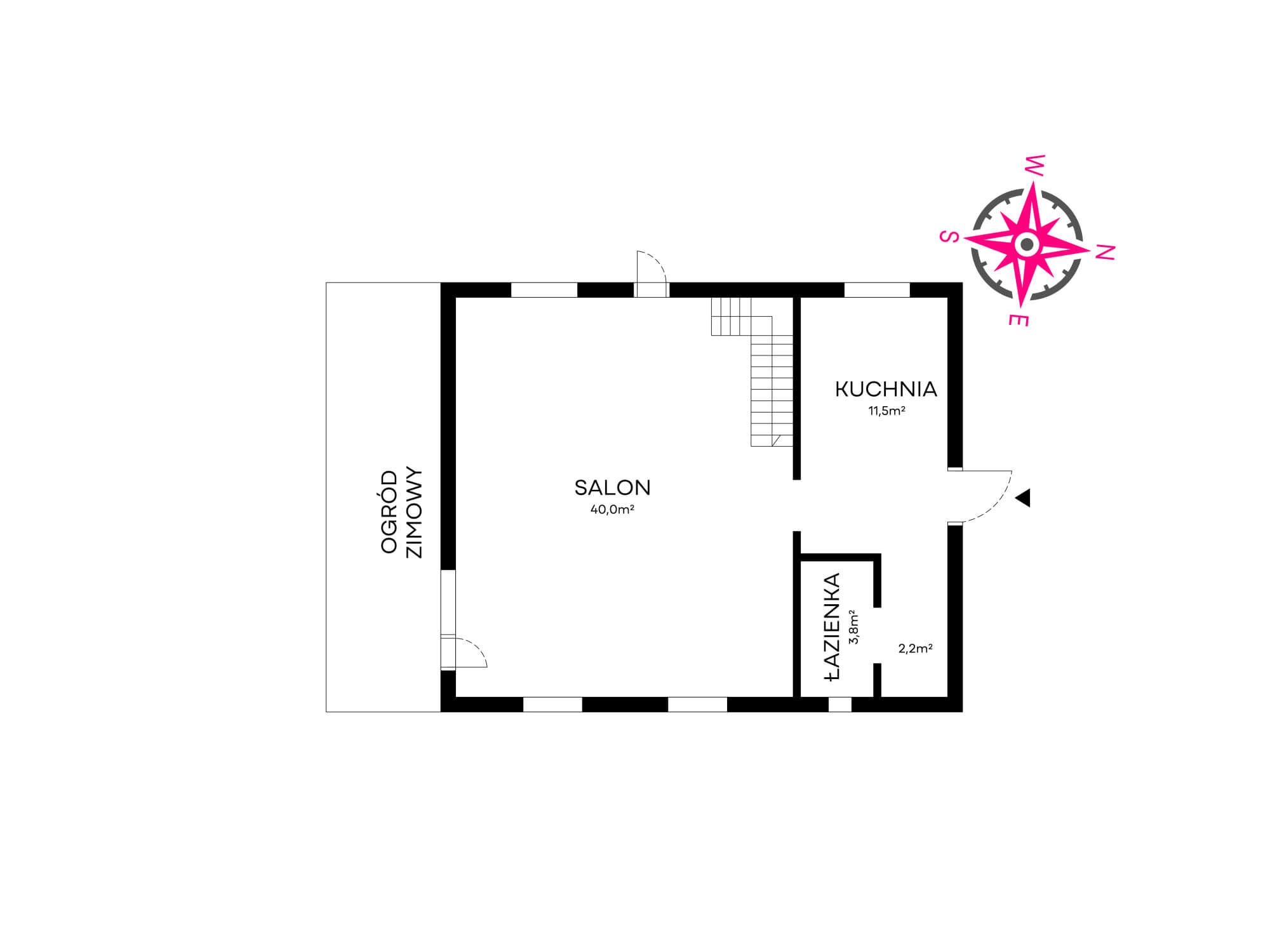 – salon ok 40 m/2 z wyjściem do ogrodu zimowego od strony południowej. W salonie kominek