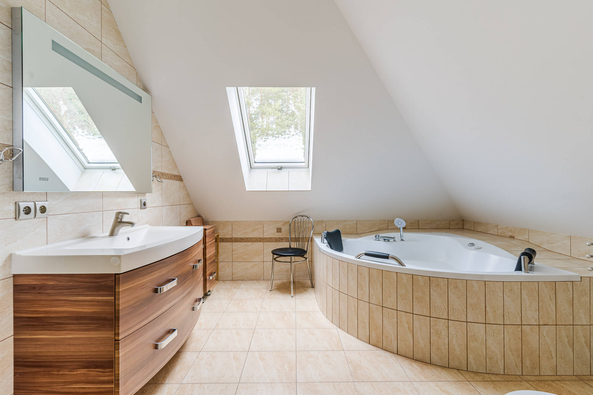 – sypialnia (21 m/2 ) z wyjściem na balkon od strony południowej oraz prywatną łazienką z wanną i kabiną prysznicową (12 m/2)