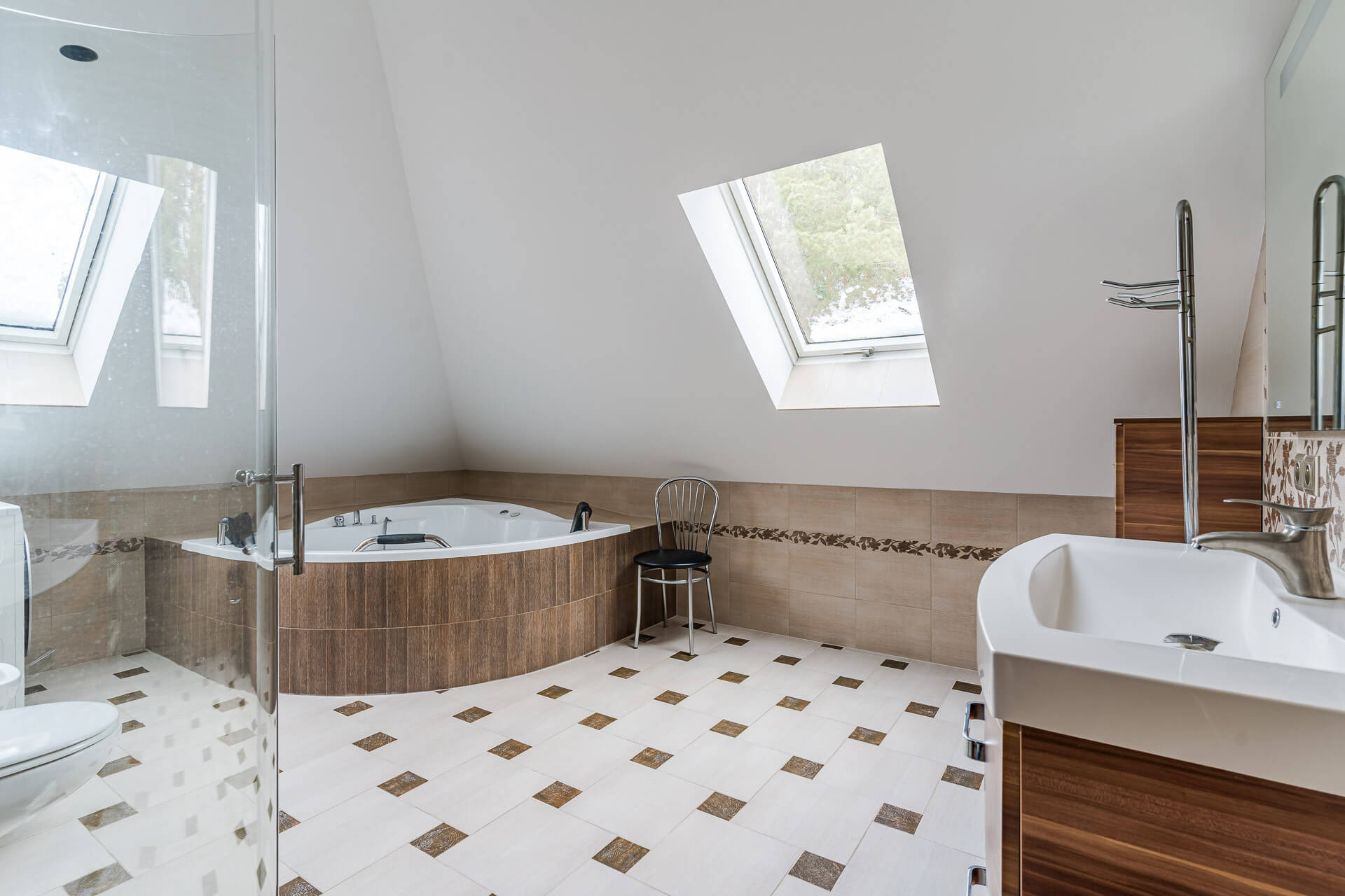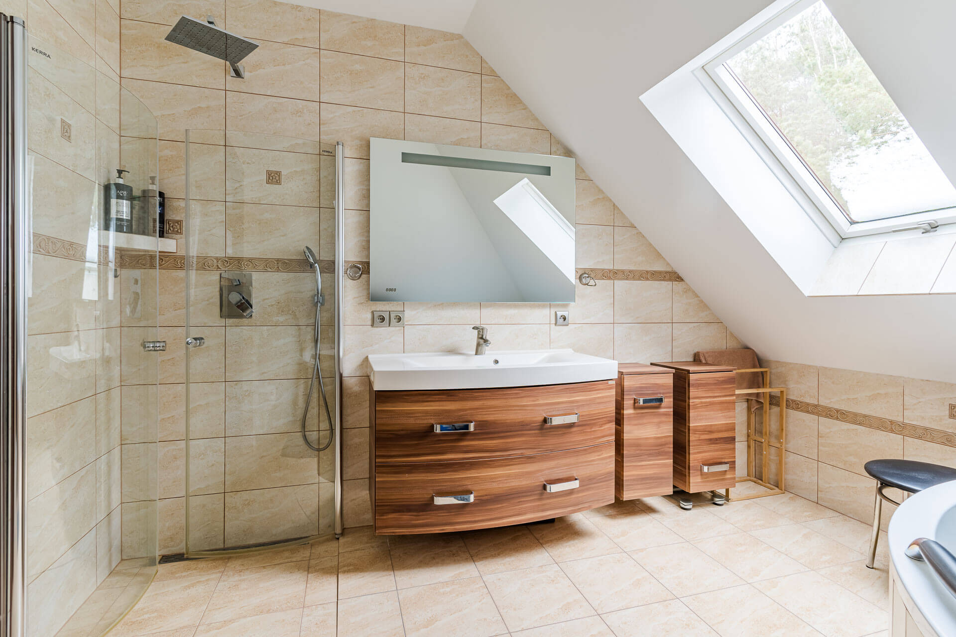 – łazienka o powierzchni ok 15 m/2 z wanną i kabiną prysznicową