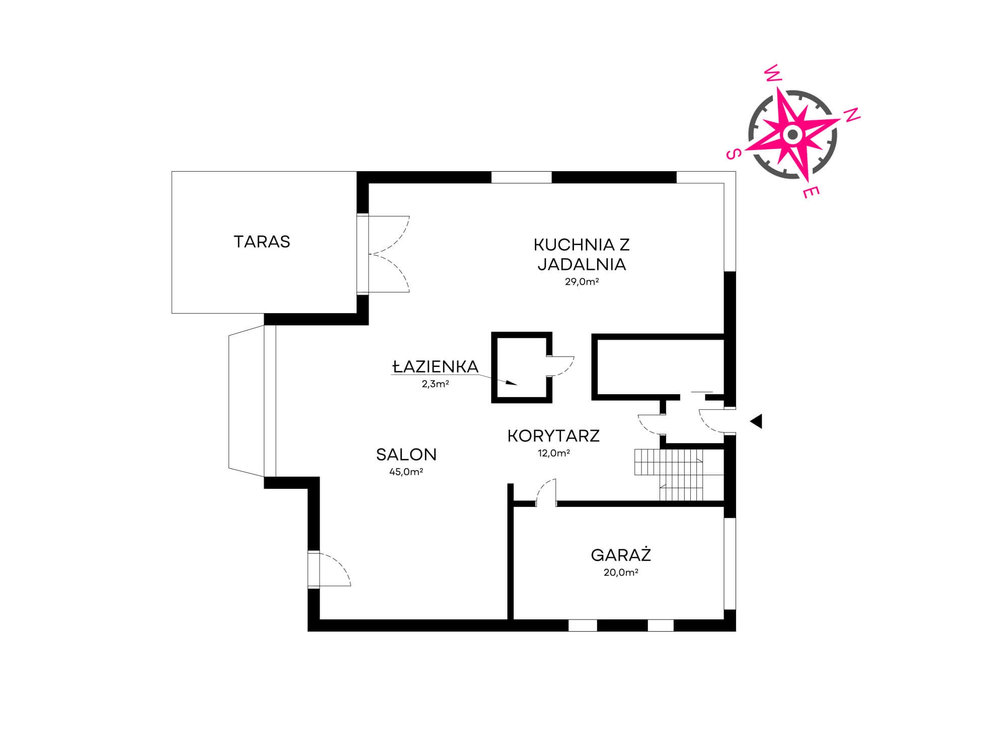 – przestronny korytarz (12m/2) z bezpośrednim wejściem do garażu ponad 20 m/2
