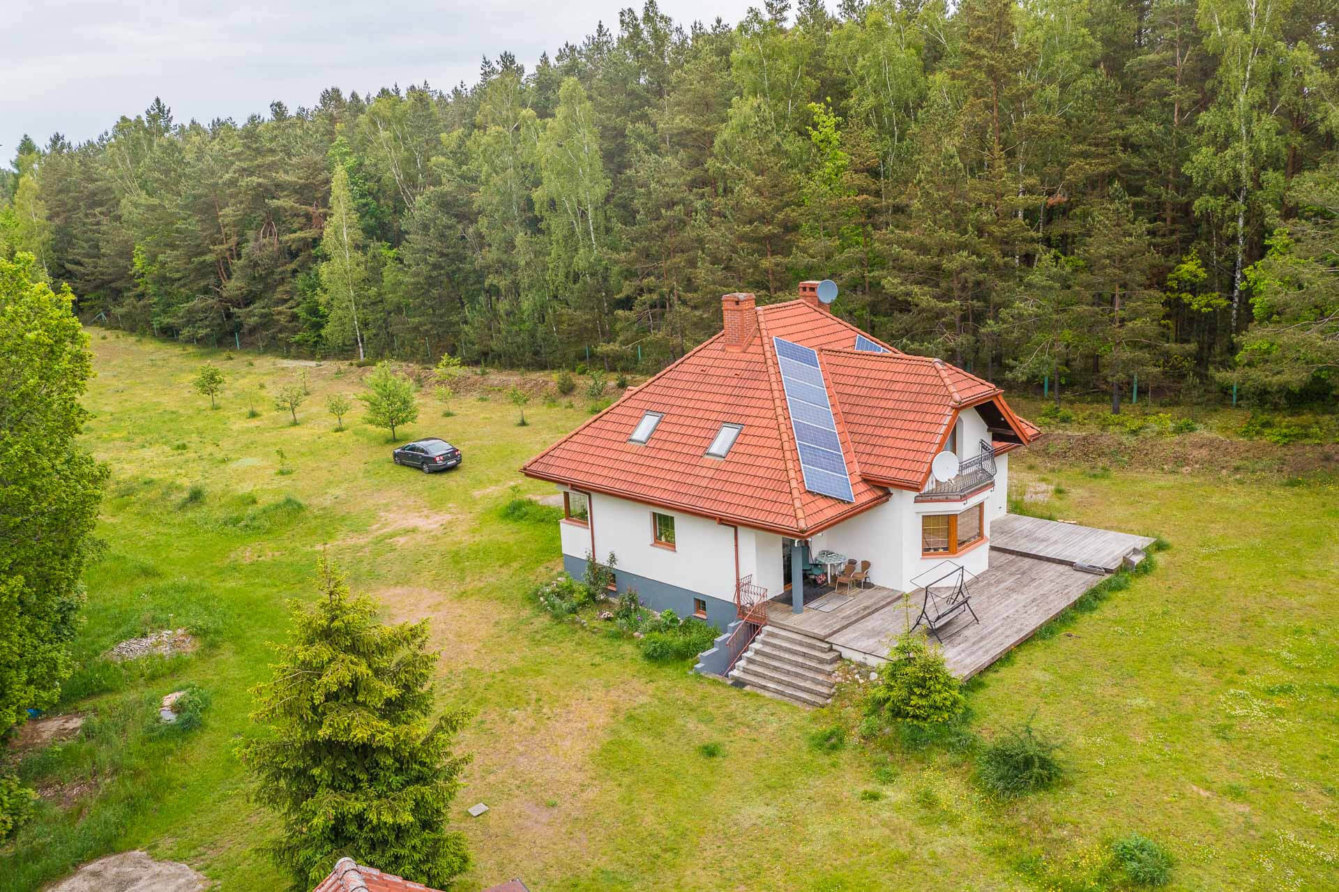 Oferta dostępna tylko w naszym biurze – wyjątkowa lokalizacja – 2 domy otoczone lasem – cały teren ogrodzony.