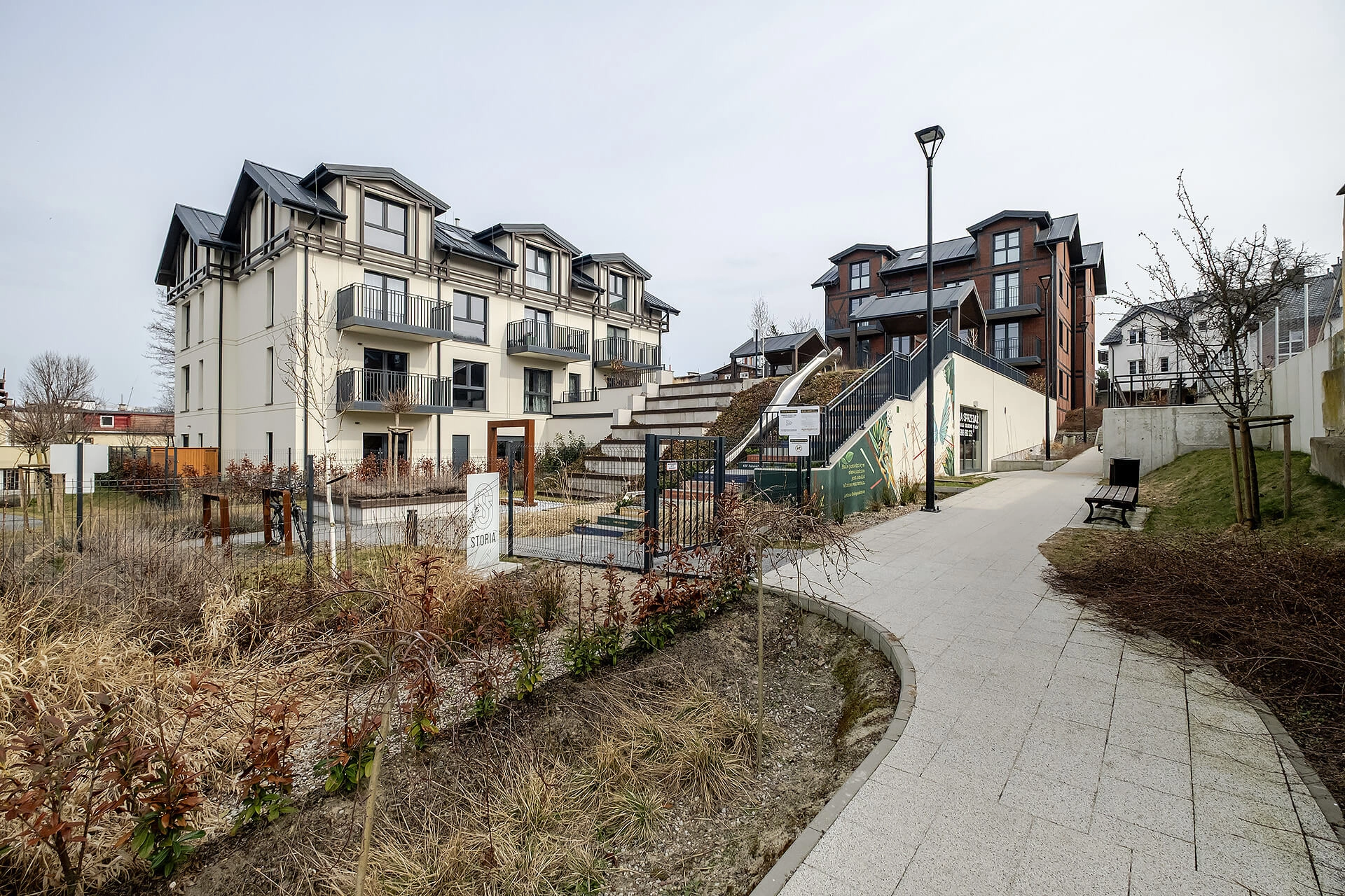 Niski 2-piętrowy wybudowany w 2024 roku. Do wykończenia wnętrz budynku i elementów małej architektury użyto materiałów wysokiej klasy. Wspólnota Mieszkaniowa z pomocą firmy zarządzającej dba o czystość i estetykę wspólnych powierzchni. Osiedle Storia zapewnia mieszkańcom wygodną i bogatą strefę rekreacyjno-wypoczynkową: siłownię, saunę, ściankę solną oraz klub sąsiedzki. Na wewnętrznym patio/dziedzińcu miejsce do spotkań, zjeżdżalnia, ławeczki.