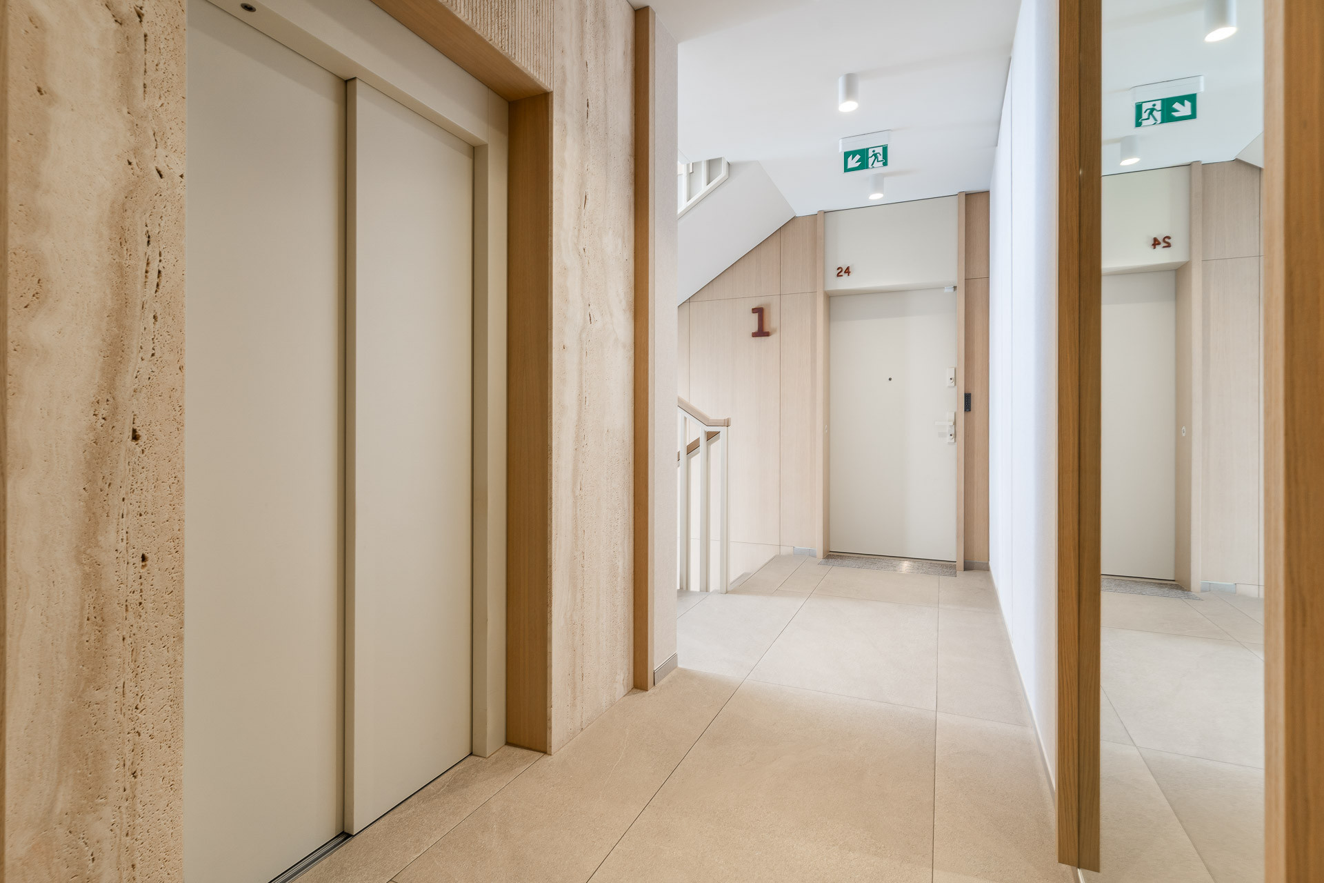 Na powierzchnię 83,6 m² (całkowita 90,89 m²) składają się dwa niezależne apartamenty, każdy wyposażony w aneks kuchenny, łazienkę i dodatkową sypialnię.