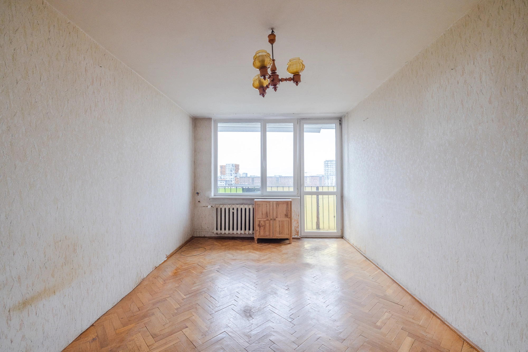 Mieszkanie w stanie do remontu o dużym potencjale aranżacyjnym, z możliwością wydzielenia 3 pokoju oraz garderoby w przedpokoju.