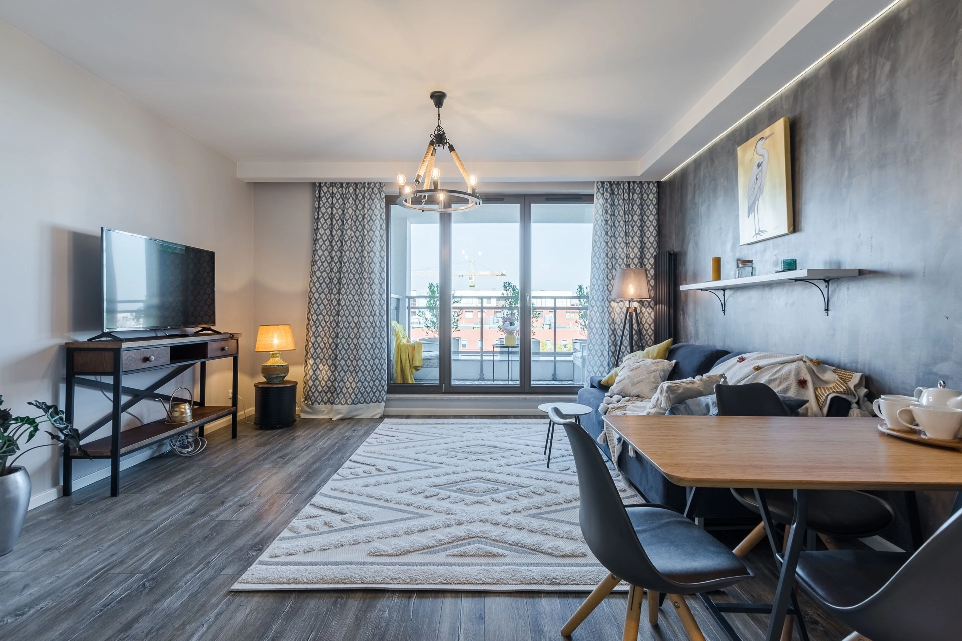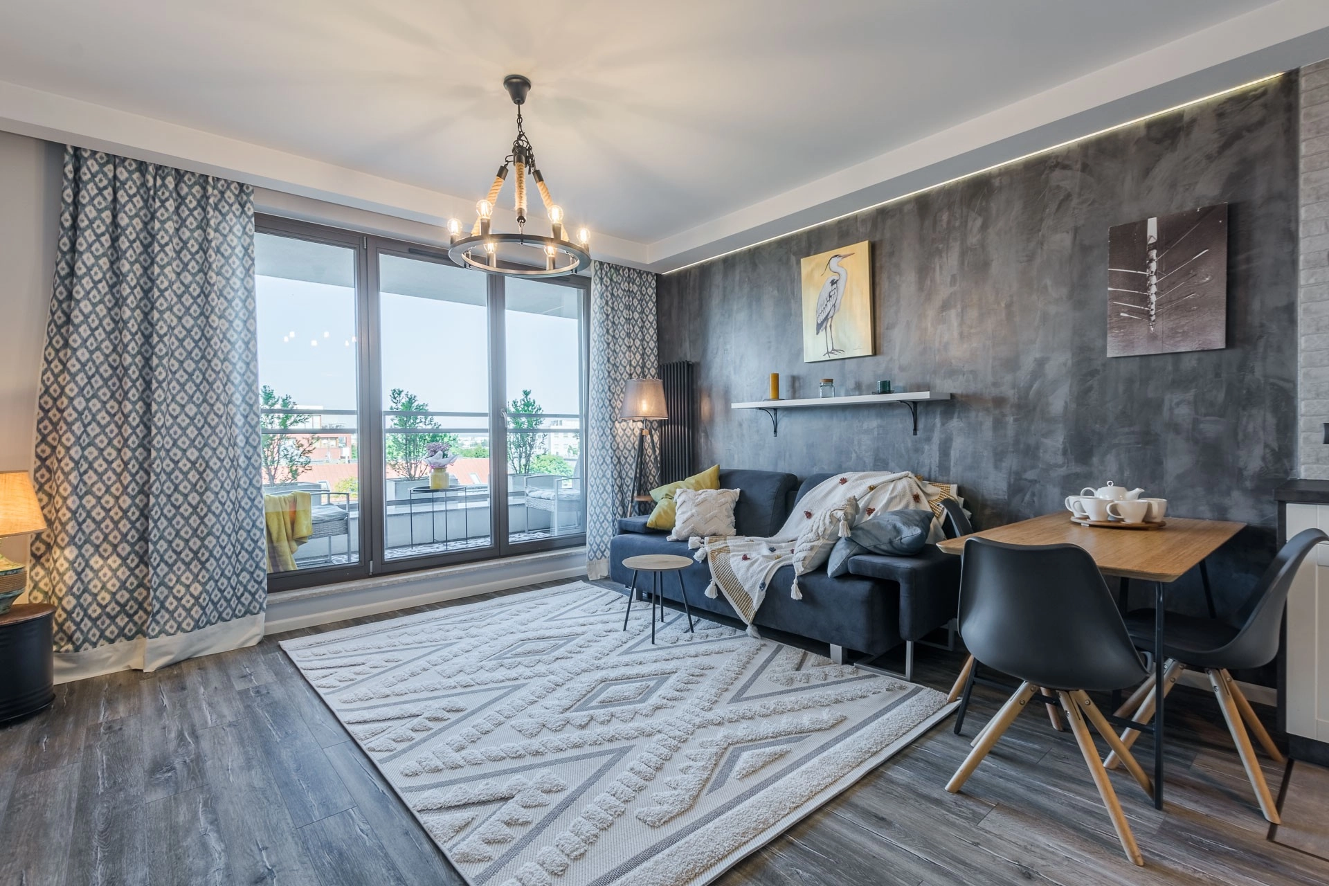 BUDYNEK: mieszkanie znajduje się w apartamentowcu wybudowanym w 2017 roku przez dewelopera Hossę. Osiedle znane jest z wysokiej jakości wykończenia zarówno mieszkań jak i części wspólnych, klatek schodowych. Wejście do budynku zabezpieczone jest domofonem. Miejsce to jest doskonałym rozwiązaniem dla kogoś ceniącego sobie życie w centrum miasta.