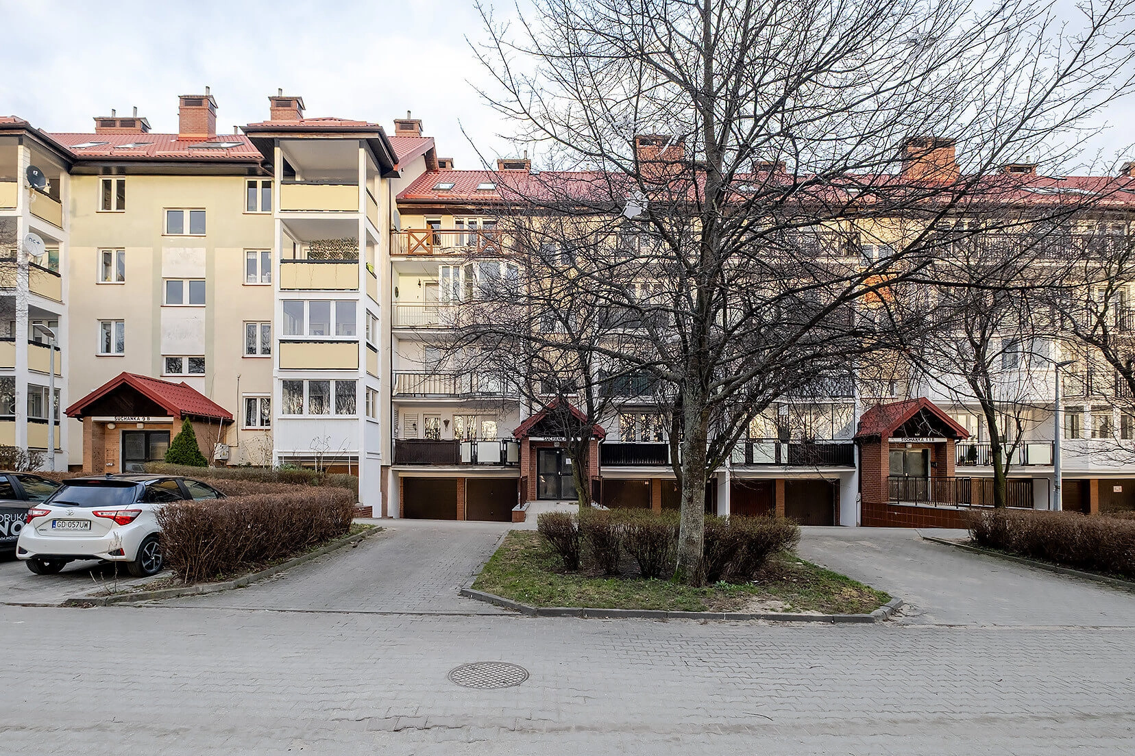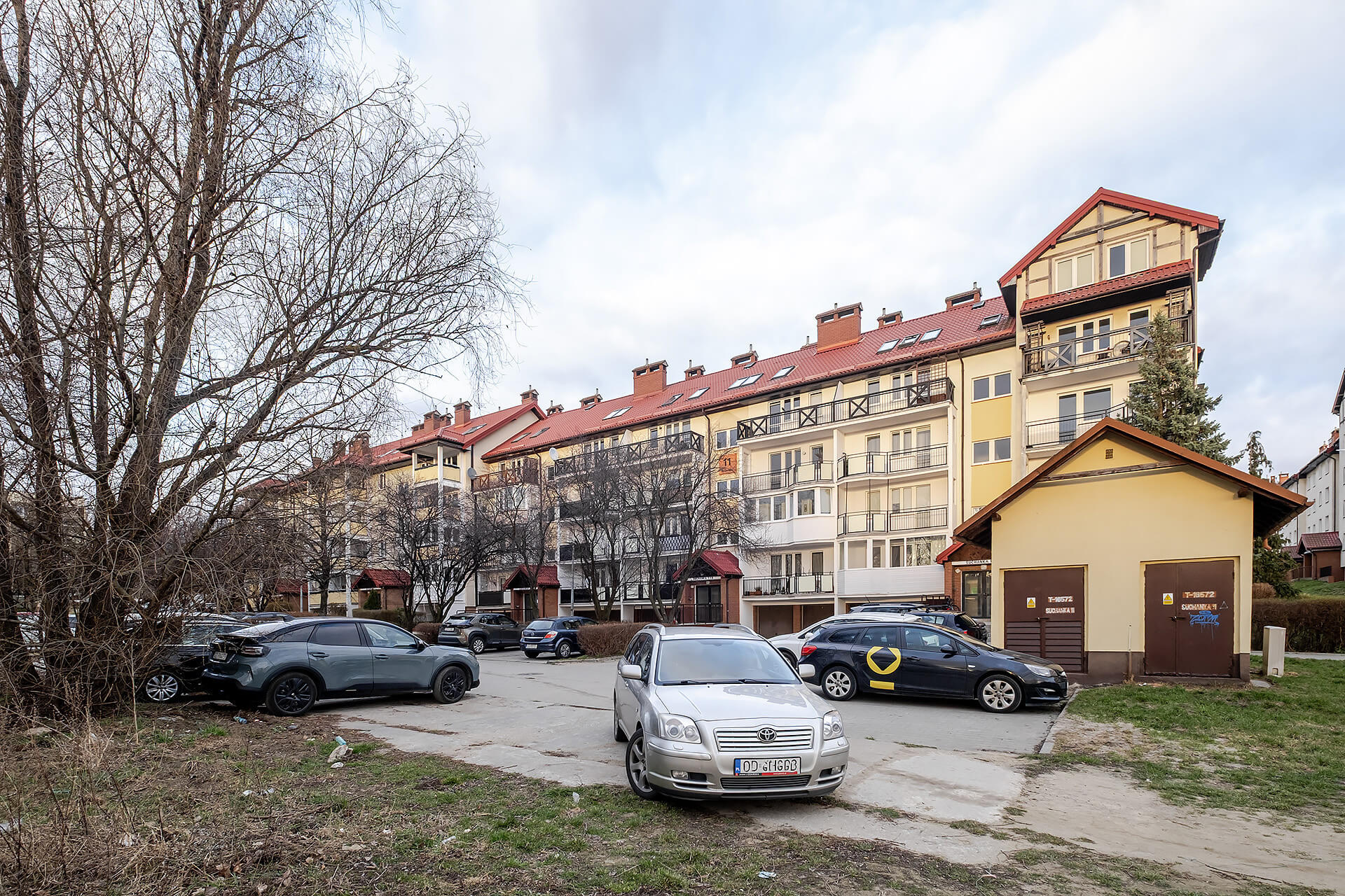 konstrukcją. Przed budynkiem znajdują się ogólnodostępne miejsca postojowe