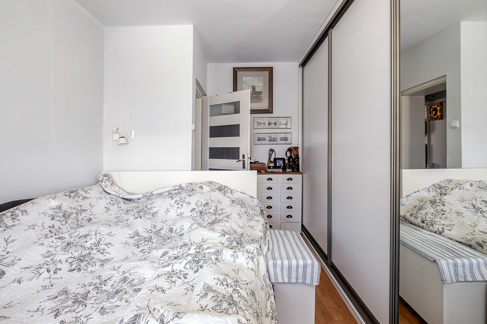 – sypialnia z szafą w zabudowie i łóżkiem 160 cm,
