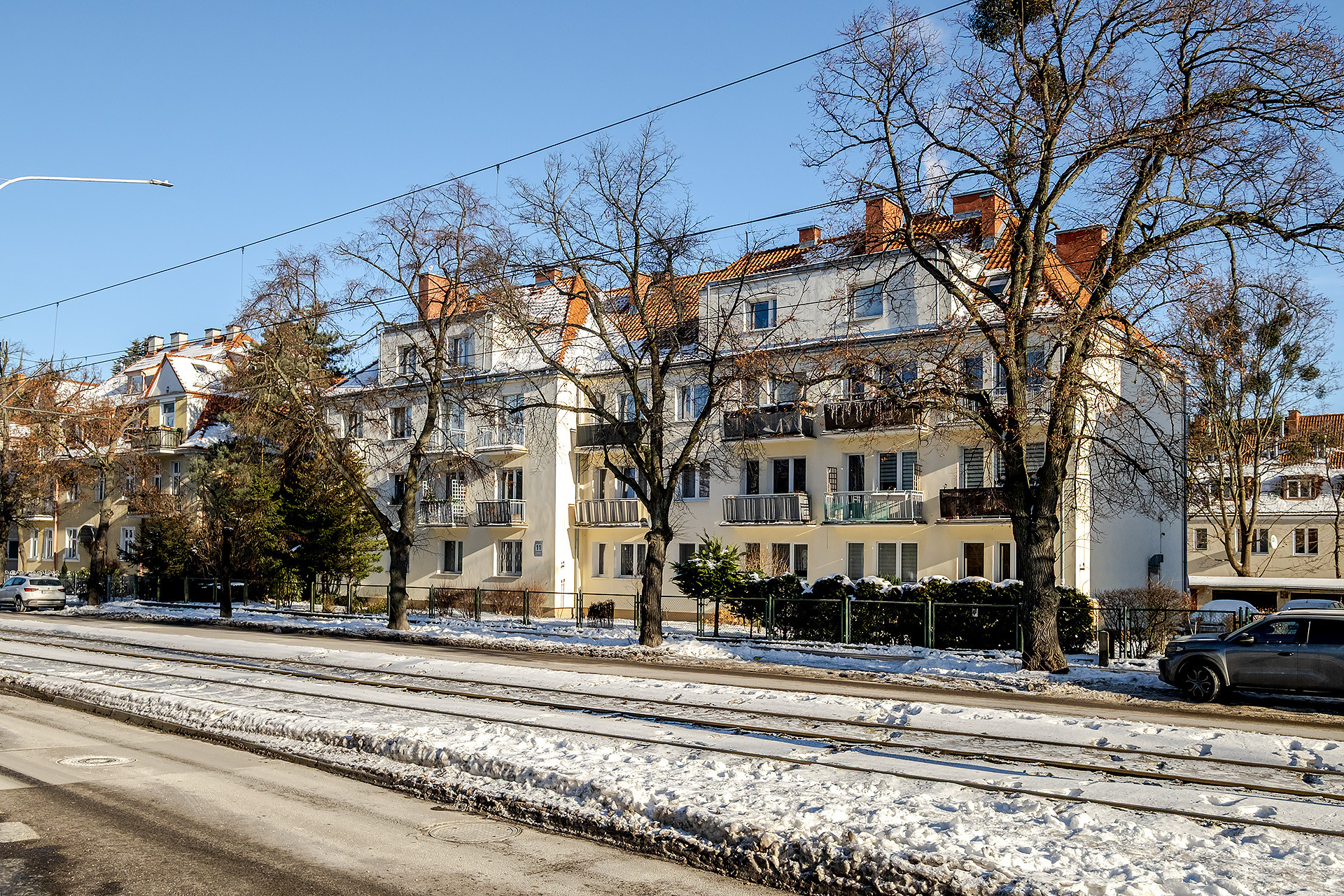 BUDYNEK: Mieszkanie mieści się na 2. piętrze w 3-piętrowej kamienicy wzniesionej ok. 1920 roku. Wykonano ją z cegły, a na dachu ułożono dachówkę ceramiczną. Ogólny stan całej nieruchomości należy uznać za bardzo dobry. Budynek posiada odświeżoną elewację, jest ocieplony. Klatka schodowa zadbana, czysta i szeroka, a wejście do niej zabezpieczone jest domofonem. Teren kamienicy jest ogrodzony. W pobliżu nieruchomości liczne ogólnodostępne miejsca postojowe.