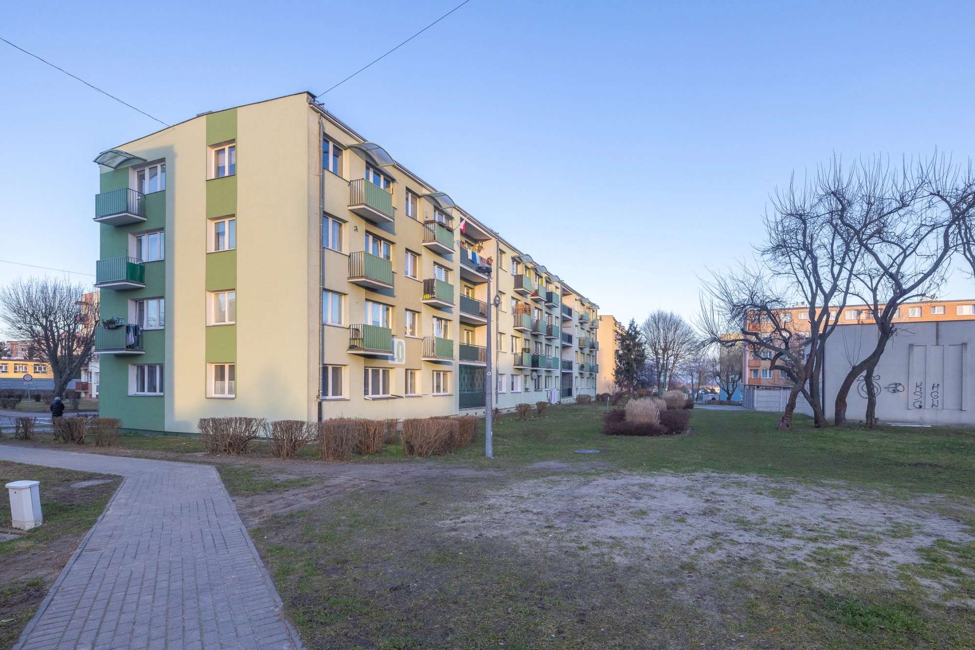 BUDYNEK: Mieszkanie mieści się na 2 piętrze 3-piętrowego bloku wzniesionego w latach 70. Stan całej nieruchomości należy uznać za bardzo dobry, budynek jest ocieplony. Klatka schodowa czysta, zadbana, szeroka, a wejście do niej zabezpieczone domofonem. W pobliżu nieruchomości znajdziemy ogólnodostępne miejsca postojowe.