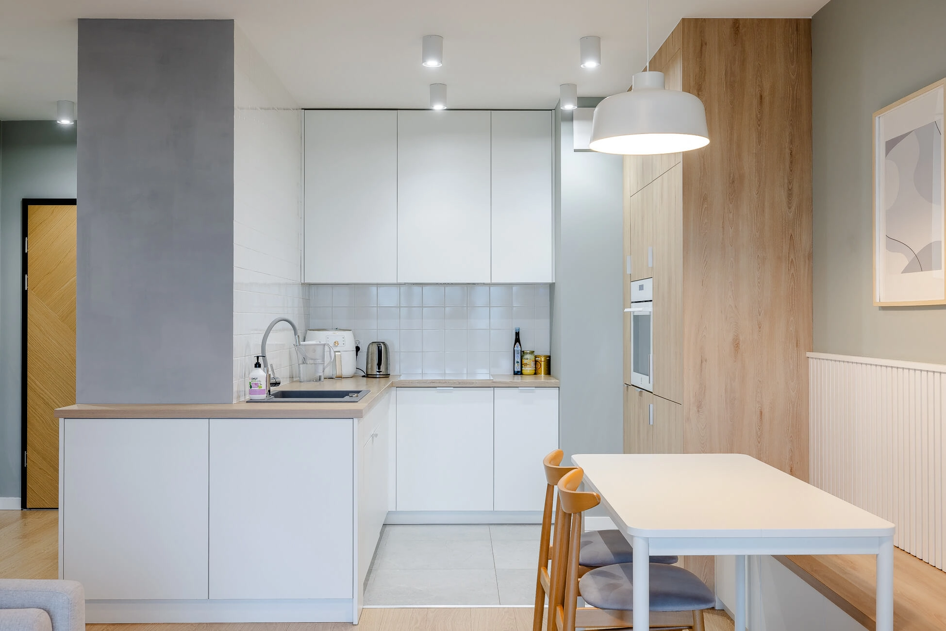 – aneks kuchenny (4,96 m2) z meblami w zabudowie oraz pełnym wyposażeniem w sprzęt AGD,