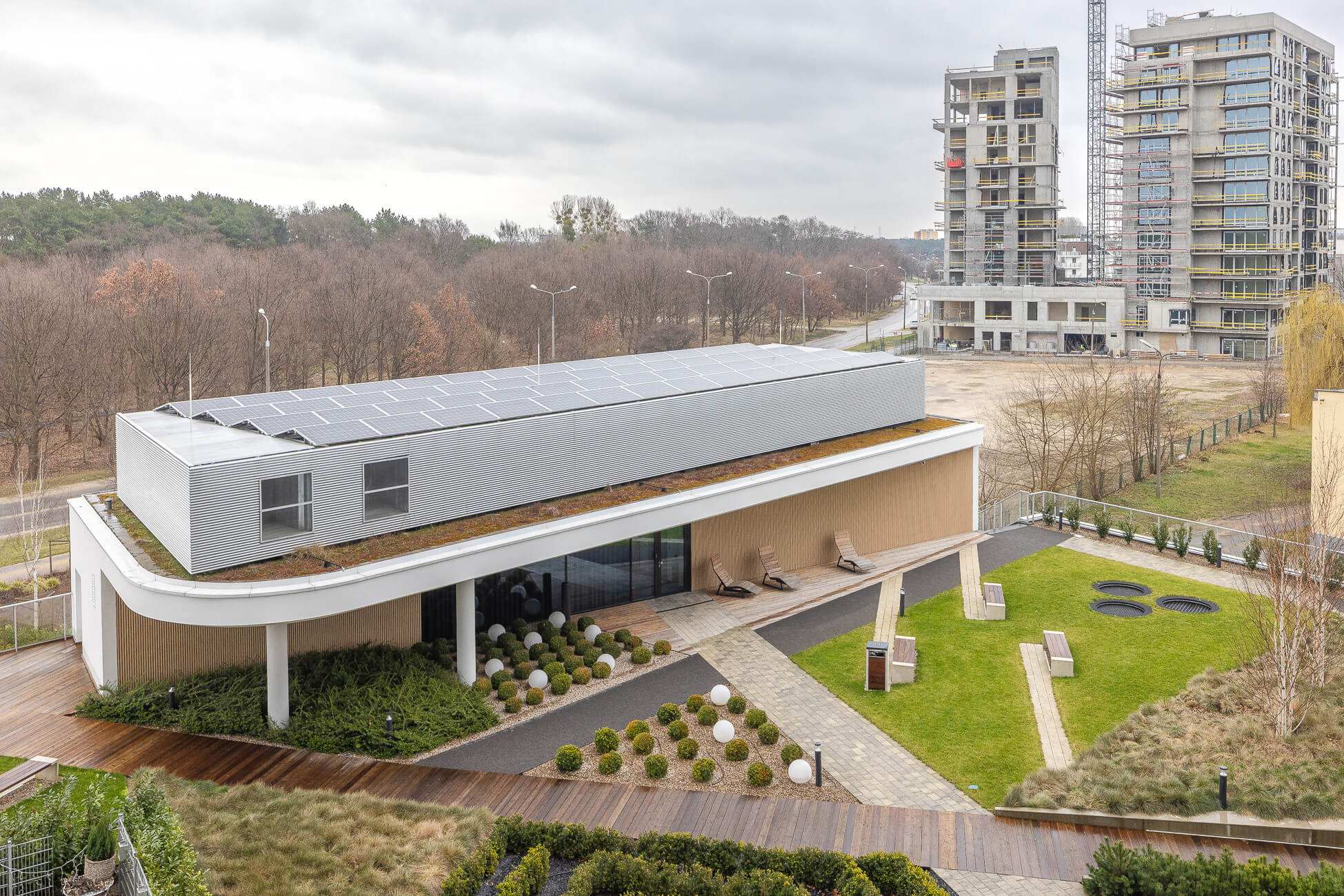 BUDYNEK: mieszkanie znajduje się na 4. piętrze w 12-piętrowym apartamentowcu będącym częścią inwestycji kryjącej się pod nazwą Tarasy Bałtyku, której autorem jest deweloper Allcon. Budynek wzniesiono w 2022 roku przy użyciu różnych materiałów mieszanych. Ogólny stan całej nieruchomości jest idealny. Obiekt jest strzeżony oraz monitorowany. Wejście do klatki schodowej zabezpieczone jest videodomofonem. Klatka czysta, zadbana, szeroka, utrzymana w nowoczesnym stylu. Na poszczególne kondygnacje dostaniemy się też dzięki dwóm cichobieżnym i szybkim windom. W pobliżu samej nieruchomości znajdziemy ogólnodostępne miejsca postojowe. Dodatkowo do wyłącznego użytku mieszkańców: strefa SPA & Wellness z sauną, sala klubowa z bilardem, siłownia, strefa relaksu oraz patio z miejscami do wypoczynku, które jest pięknie zagospodarowane zielenią.