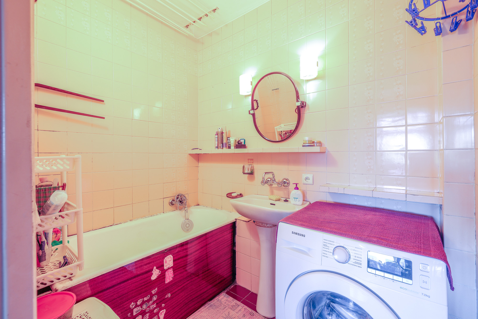 – łazienka (3,20 m2) z wanną, pralką, umywalką, lustrem, grzejnikiem drabinkowym,