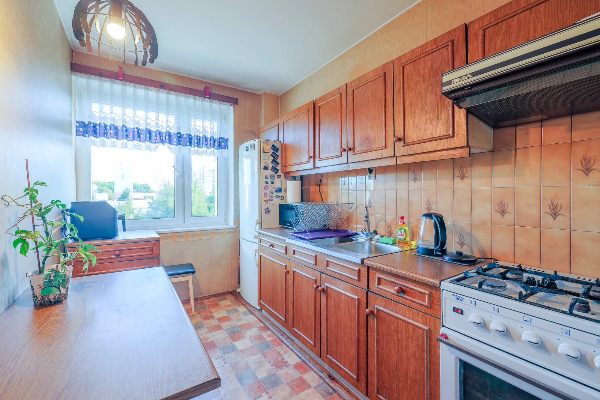 Mieszkanie wymagające remontu. Na podłogach parkiet, płytki i wykładzina. Wysokość pomieszczeń: 2,61 m. Ogrzewanie i ciepła woda z sieci miejskich. Okna są plastikowe, a ich wystawa północno-wschodnia oraz południowo-zachodnia.