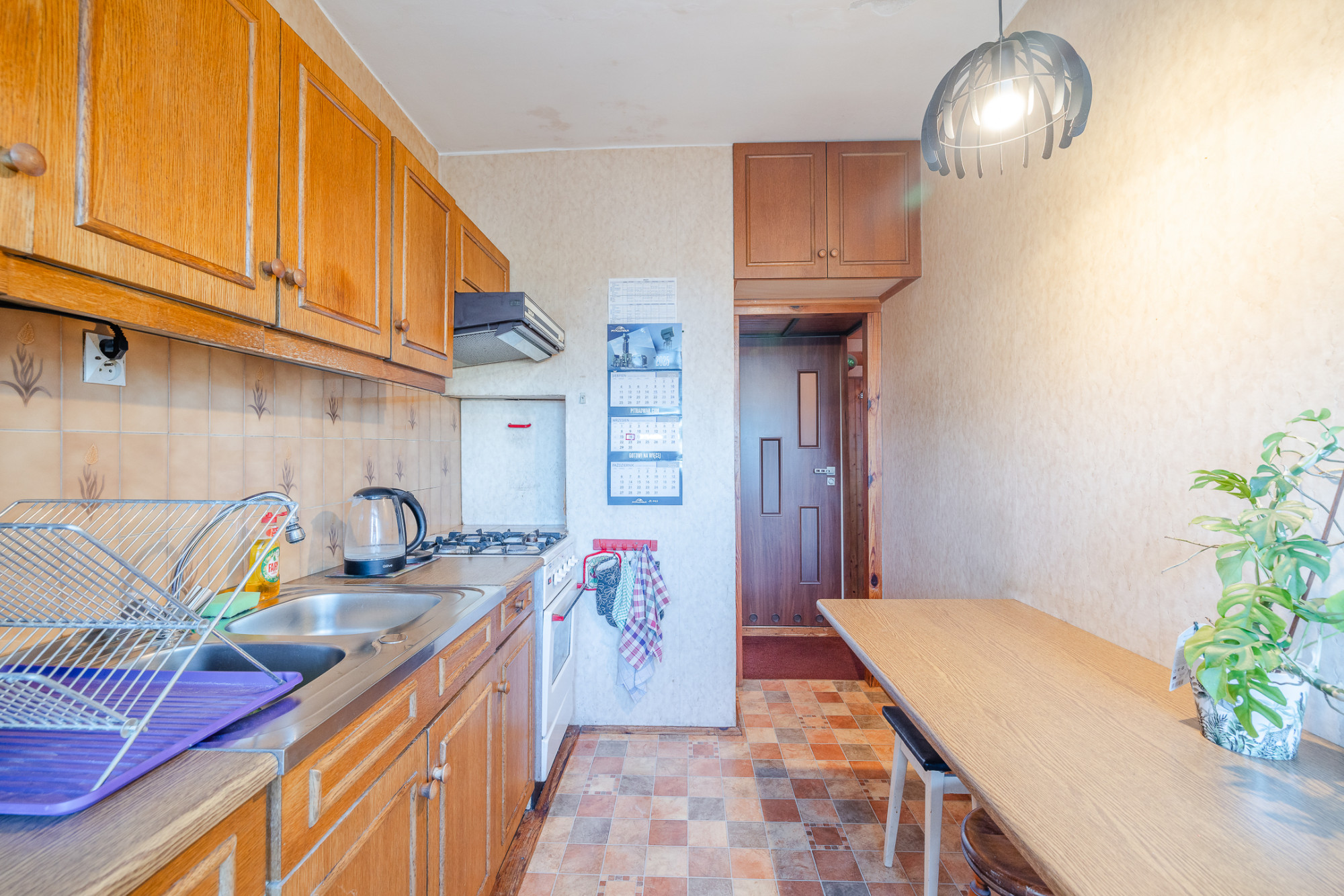– kuchnia (7,00 m2) z meblami w zabudowie, wyposażeniem w sprzęt AGD oraz oknem,