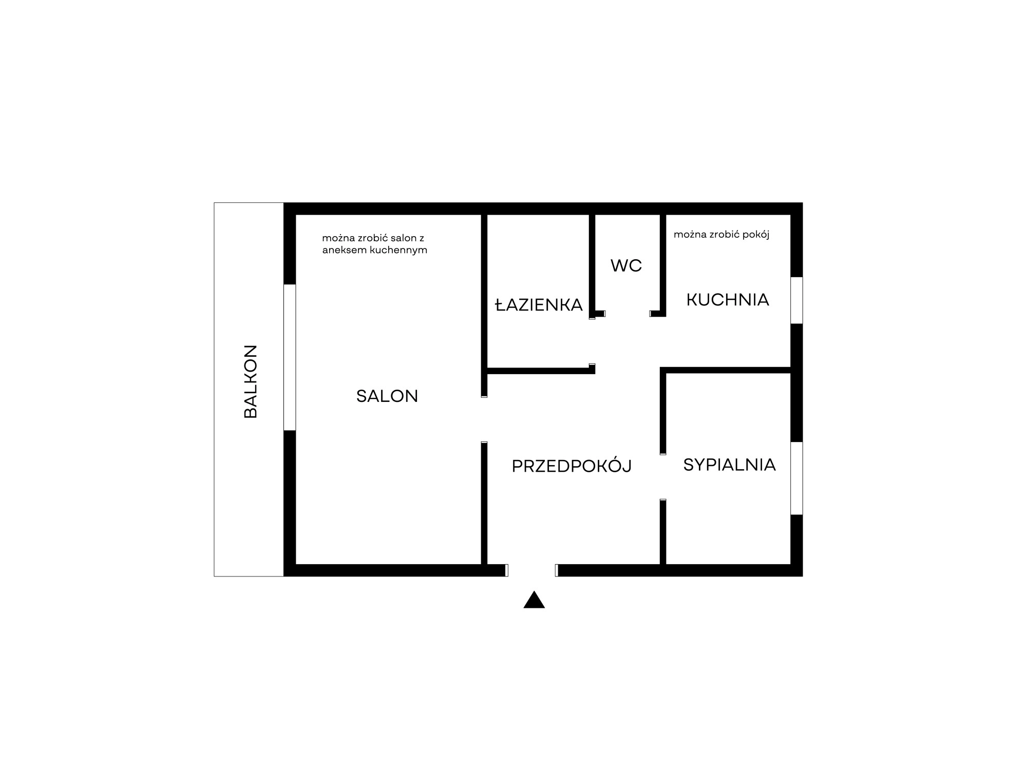 Lokal przygotowany do generalnego remontu, co stwarza możliwość dowolnej aranżacji przestrzeni, w tym przekształcenia układu na 3 pokoje.