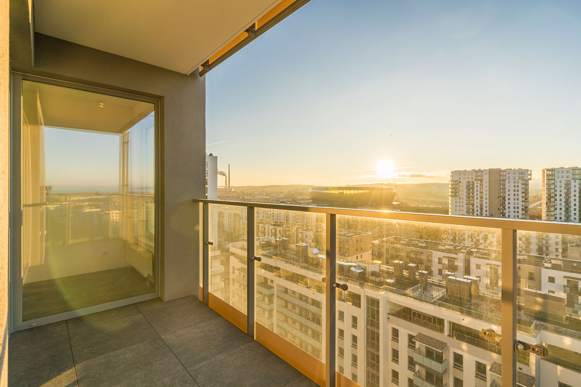 Przestronne, 2-pokojowe mieszkanie o powierzchni 51,63 m² z dużą narożną loggią (7,32 m²), z której rozpościera się przepiękny widok na morze i stadion. Mieszkanie składa się z: