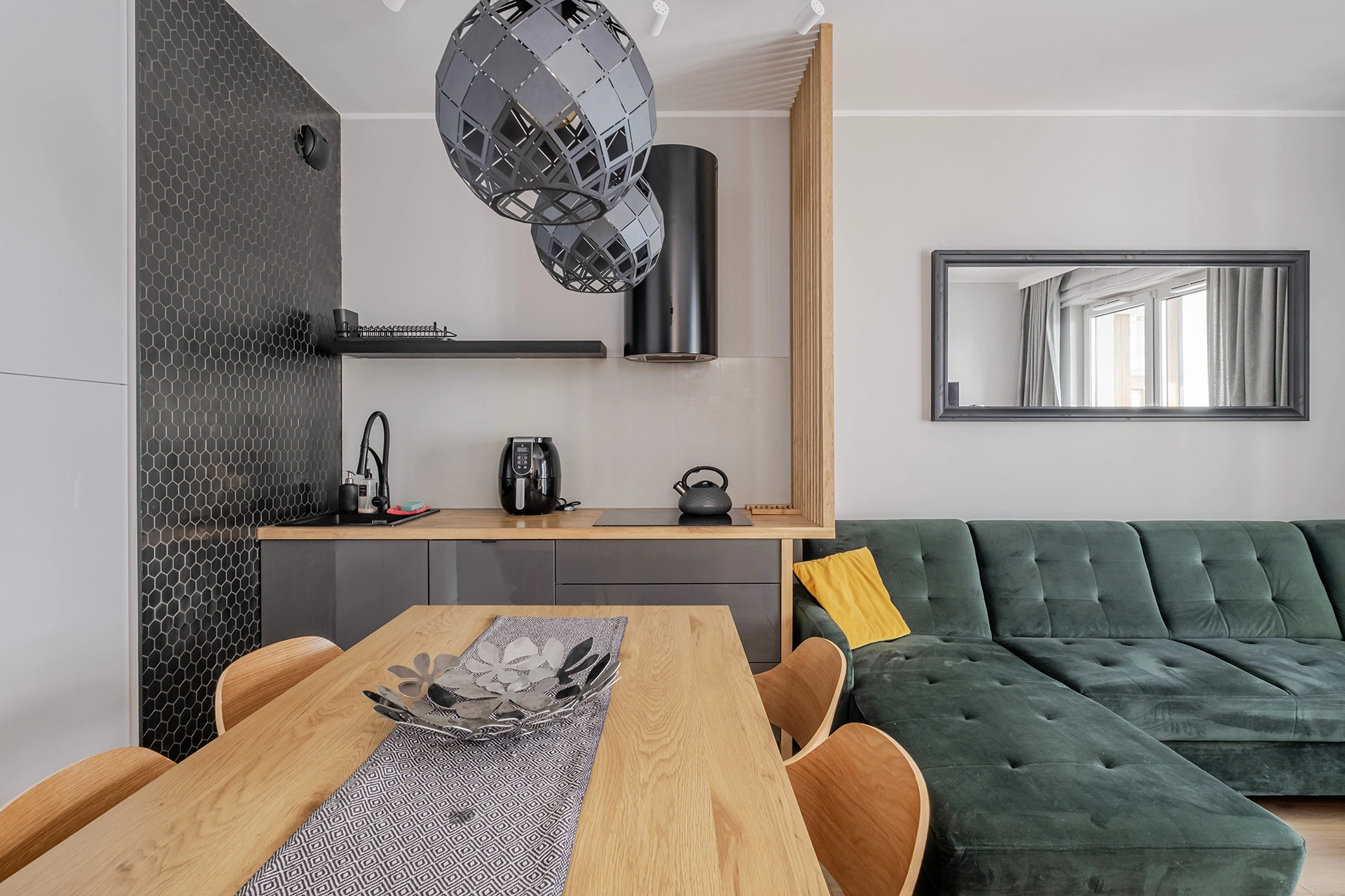 Mieszkanie jest w pełni wyposażone, funkcjonalne i urządzone z dbałością o każdy detal.