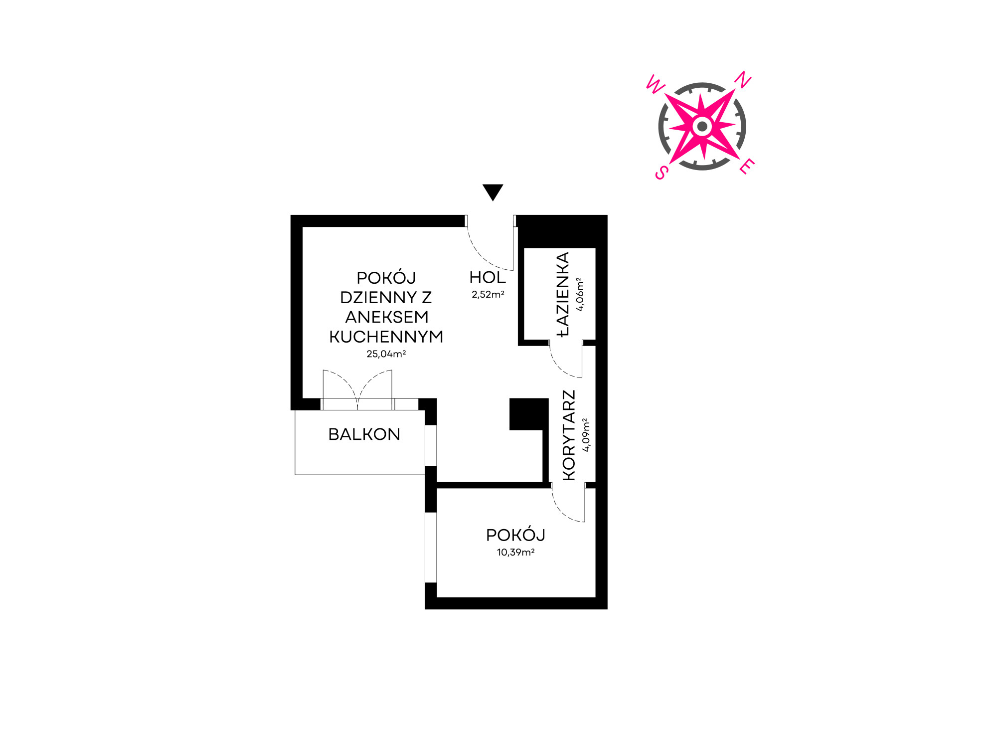 – Układ: salon z aneksem kuchennym, sypialnia, korytarz, łazienka z WC
