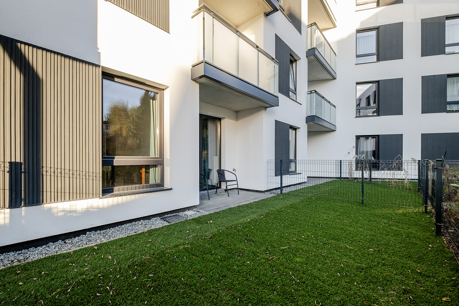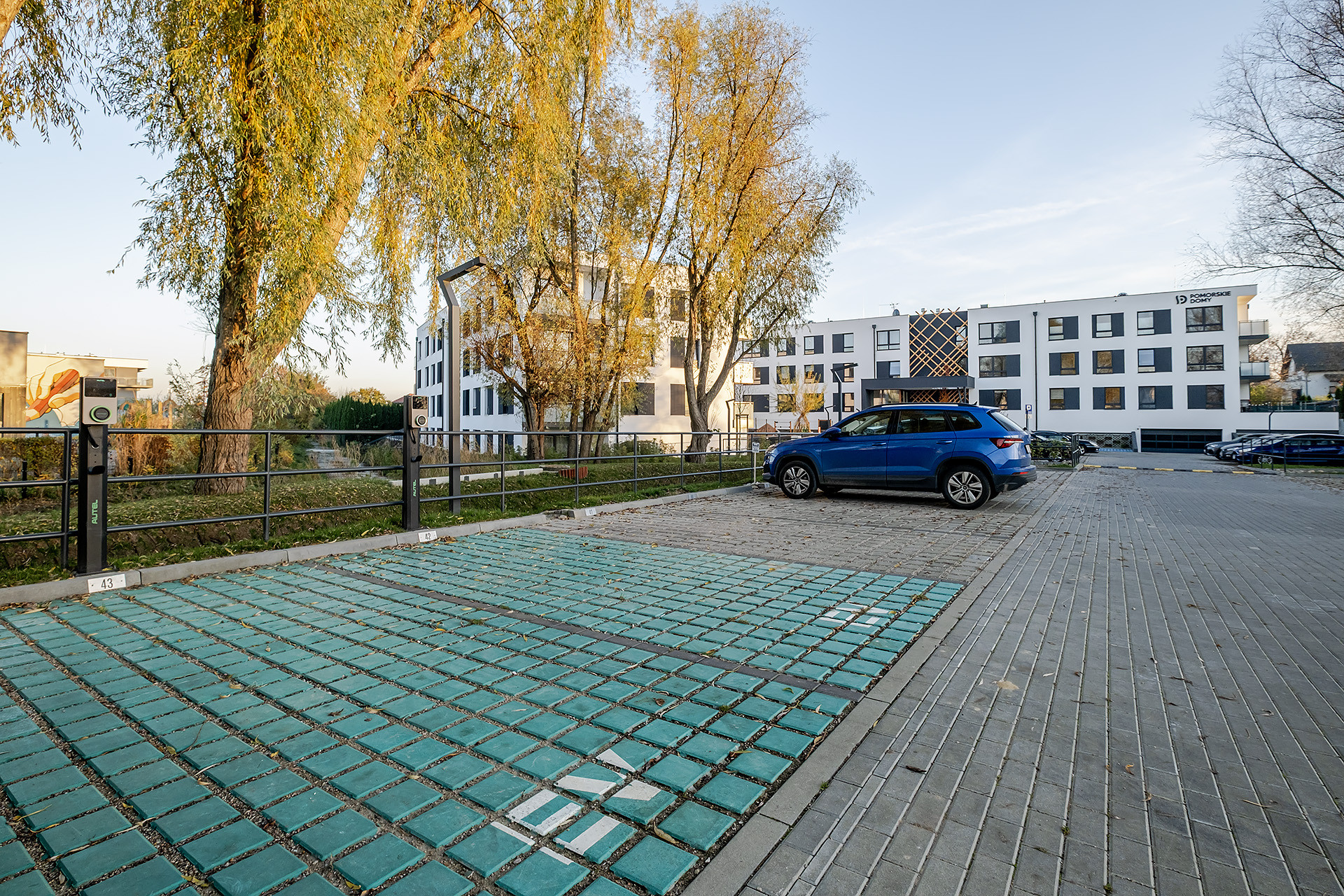 Lokal znajduje się na parterze 3-kondygnacyjnego budynku oddanego do użytku w 2024 roku. Wejście do klatki zabezpieczono domofonem, a cichobieżna winda zapewnia wygodny dostęp na wszystkie poziomy. Cały teren osiedla jest zamknięty i chroniony szlabanem sterowanym pilotem. Do dyspozycji są miejsca parkingowe dla gości oraz stacje ładowania samochodów elektrycznych.