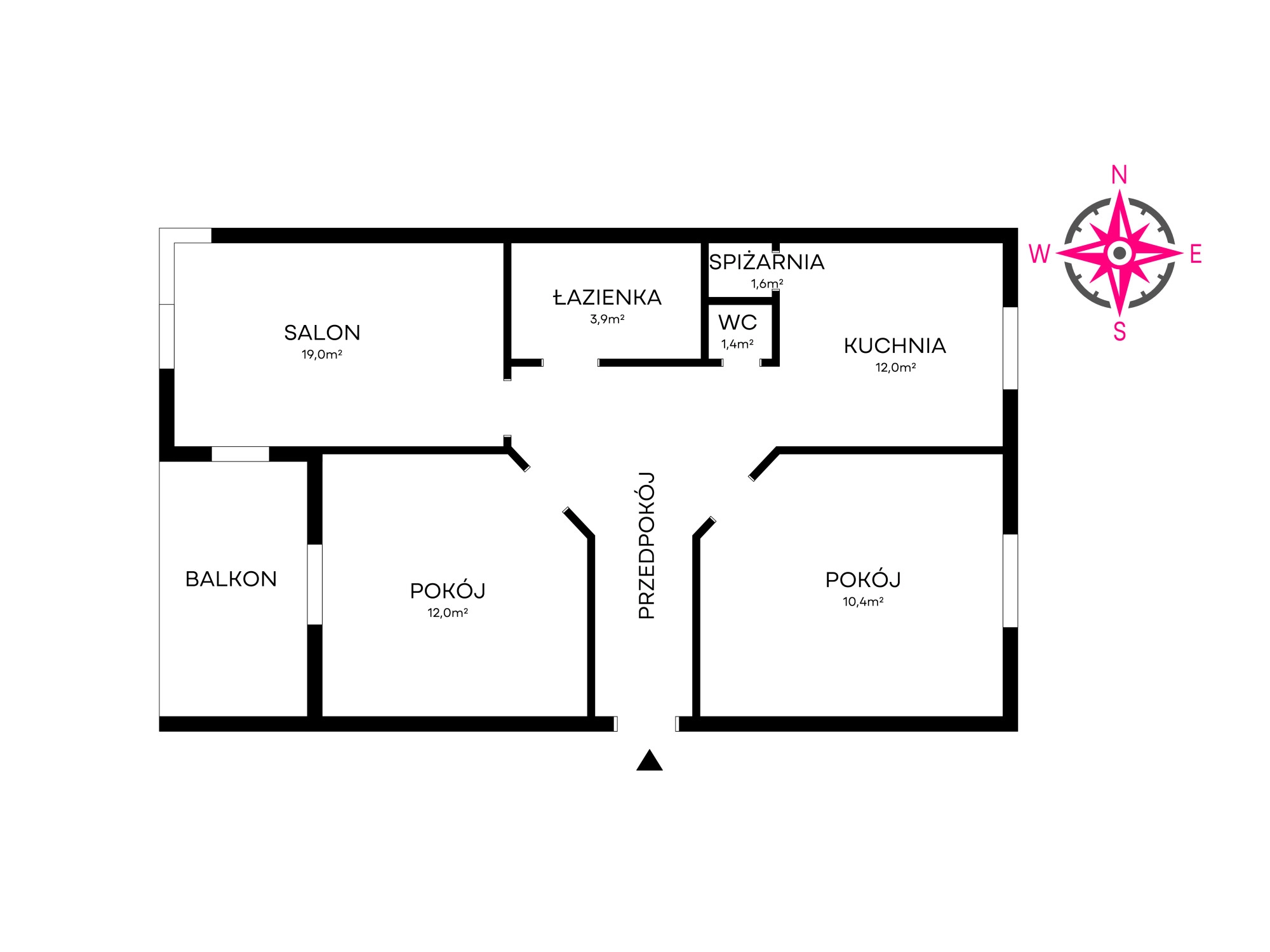 Układ mieszkania jest wyjątkowo ustawny, co daje wiele możliwości aranżacyjnych. Przestronna kuchnia z jadalnią pozwala na komfortowe spożywanie posiłków z całą rodziną, a dodatkowa spiżarnia zapewnia miejsce do przechowywania.
