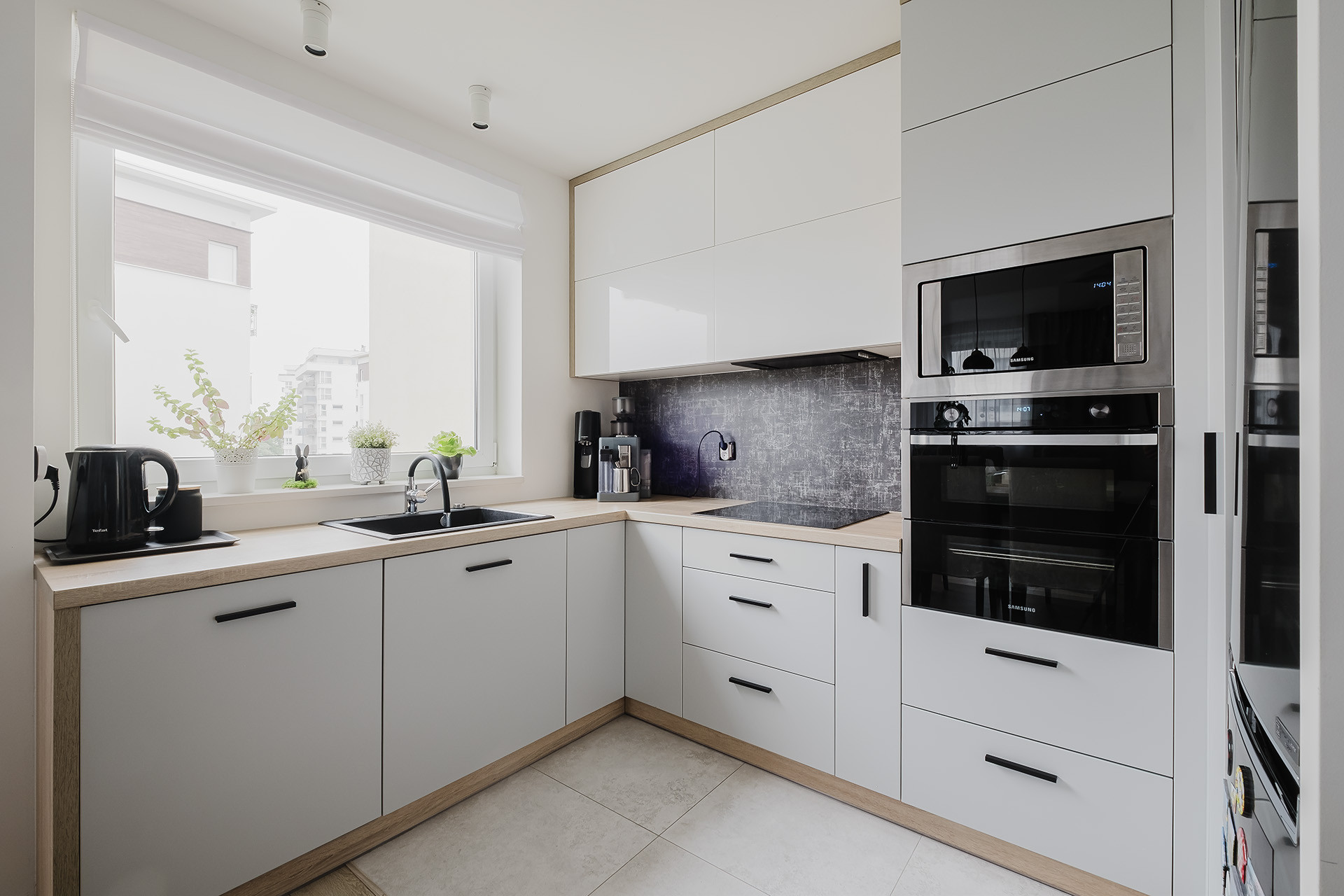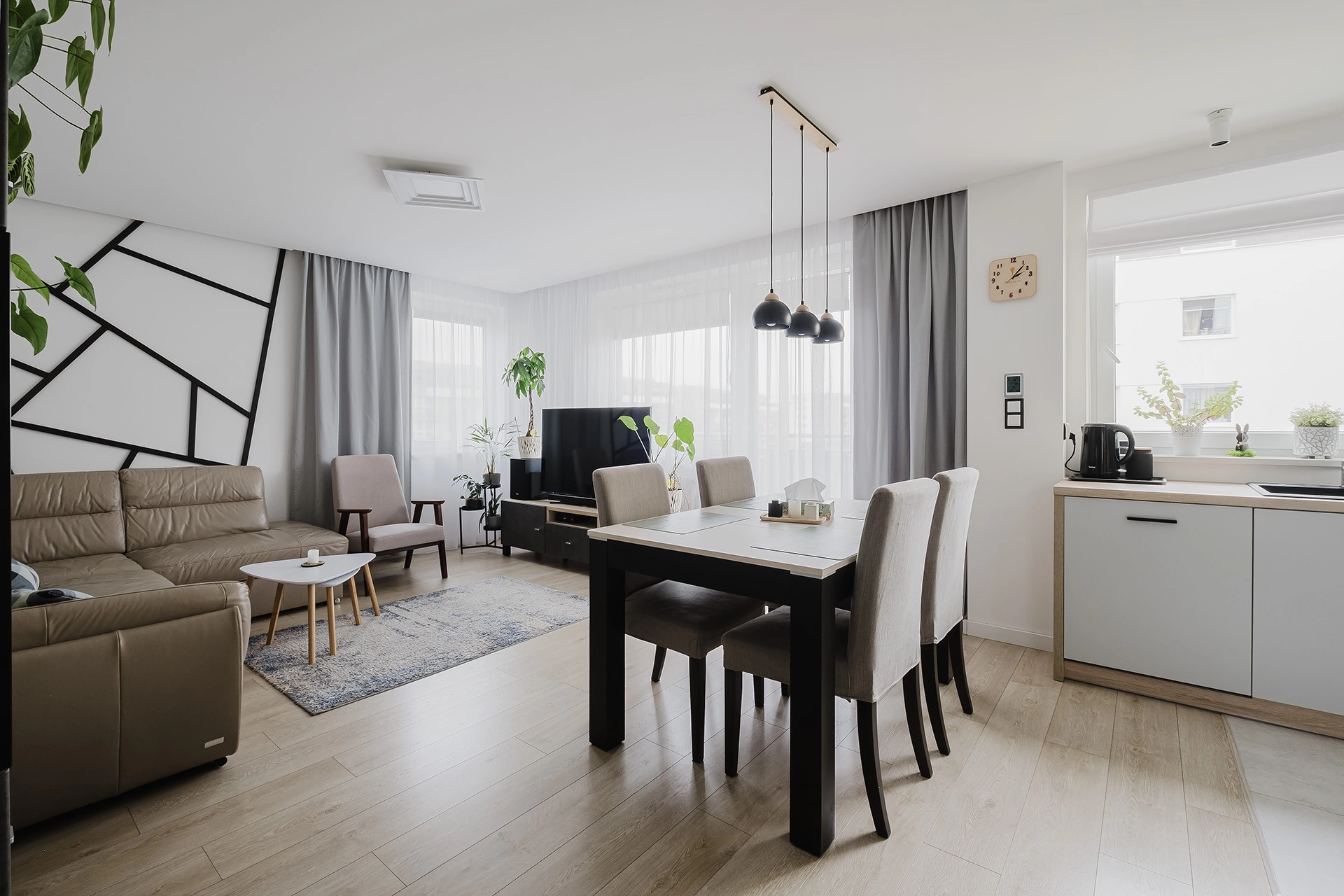 -Salonu z aneksem kuchennym i wyjściem na duży balkon,