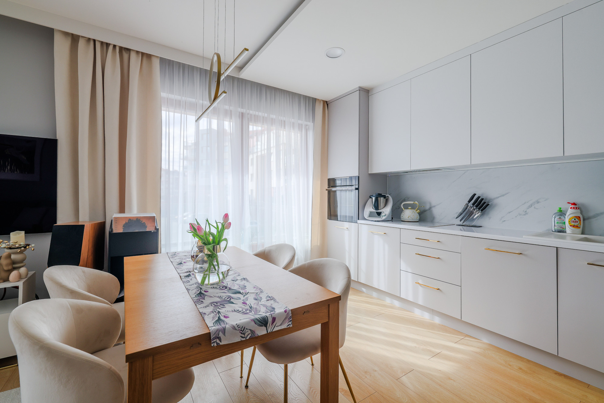 Nieruchomość o łącznej powierzchni 70 m2 oraz przestronnym tarasem o powierzchni 50 m², na którym wyjdziemy 3 różnymi wyjściami, gdzie możemy podziwiać widok na las.