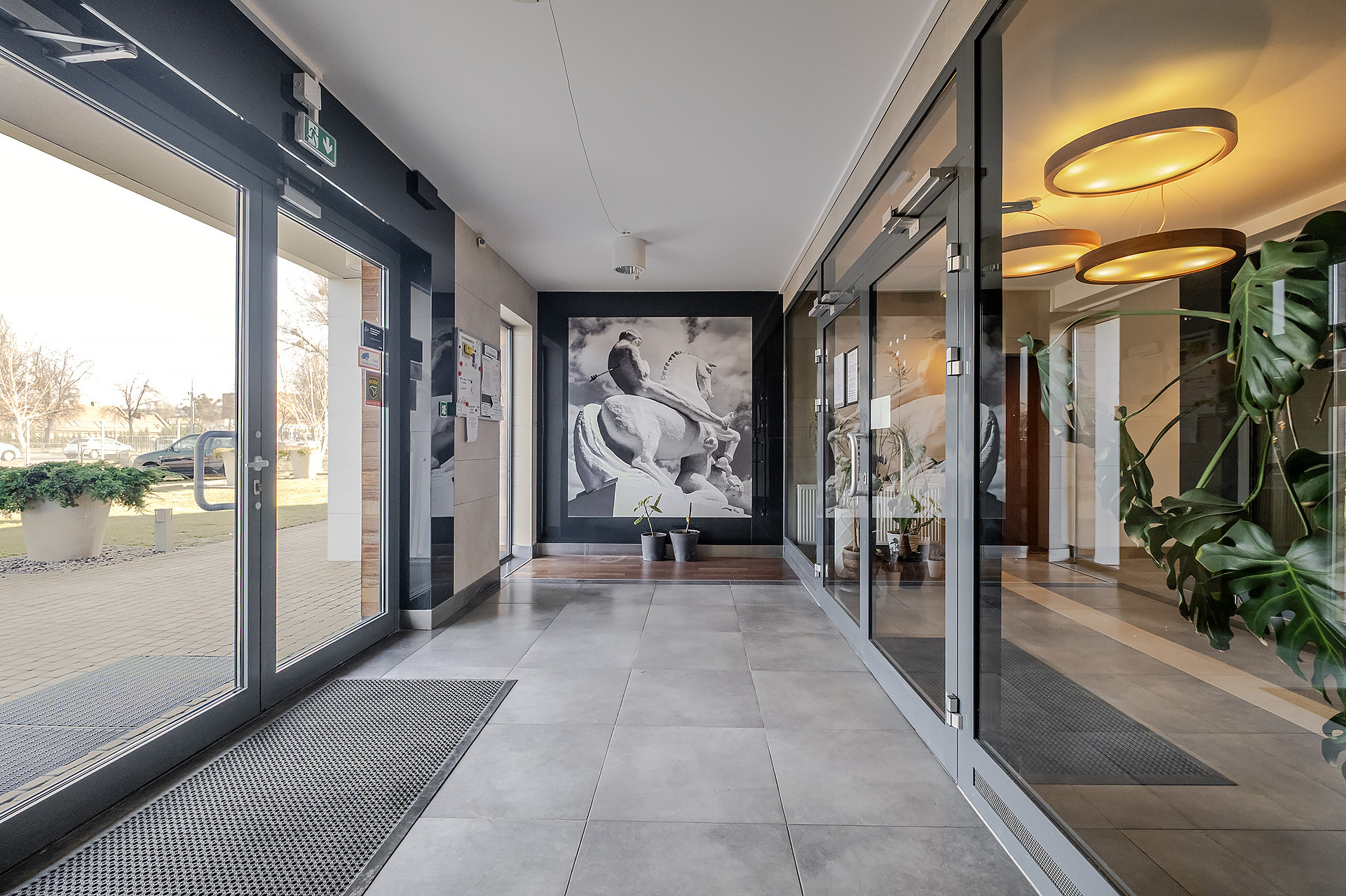 – pełny monitoring – kamery na zewnątrz, na piętrach oraz w hali garażowej
