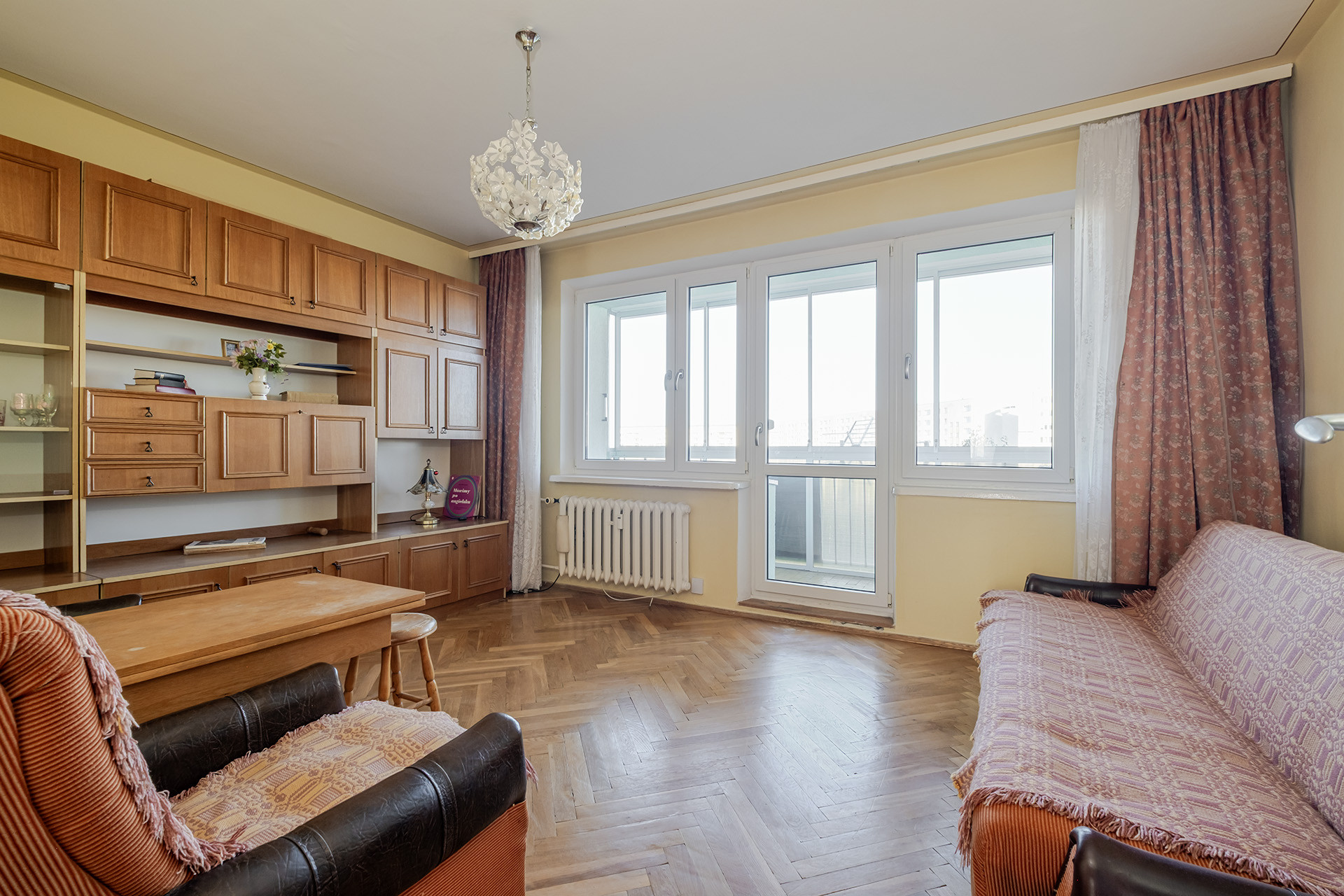 – salonu 16m² z wyjściem na duży balkon typu loggia z przesuwnymi oknami