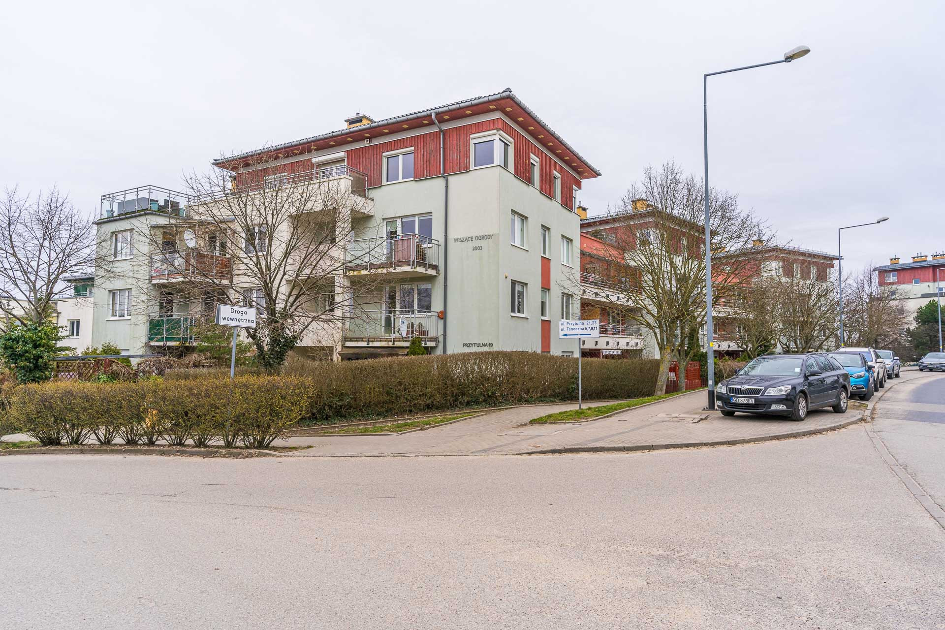 BUDYNEK: mieszkanie wchodzi w skład osiedla Wiszące Ogrody, które wybudował znany i ceniony deweloper – Hossa. Usytuowane jest na 1. piętrze 3-piętrowego bloku wzniesionego w 2003 roku. Stan całej nieruchomości należy uznać za bardzo dobry. Klatka schodowa monitorowana czysta, zadbana, szeroka. Wejście do niej zabezpieczono domofonem.