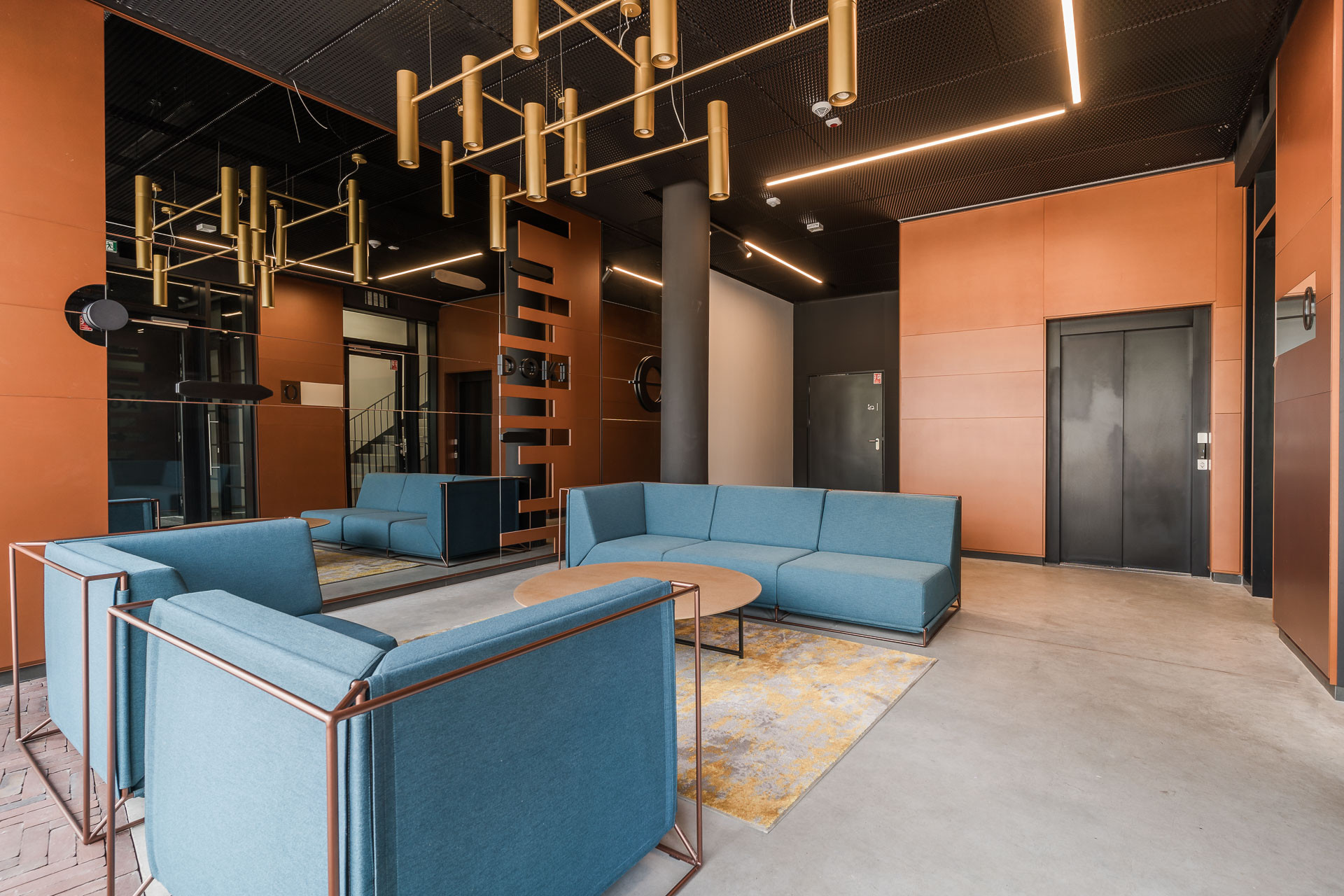 Apartamentowiec z 2024 roku. Budynek z cichobieżną windą. Wnętrza budynków zdobią elementy dekoracyjne nawiązujące stylistyką i materiałami wykończeniowymi do tych występujących na terenie stoczni. Pod budynkiem miejsca w hali garażowej i komórki lokatorskie.