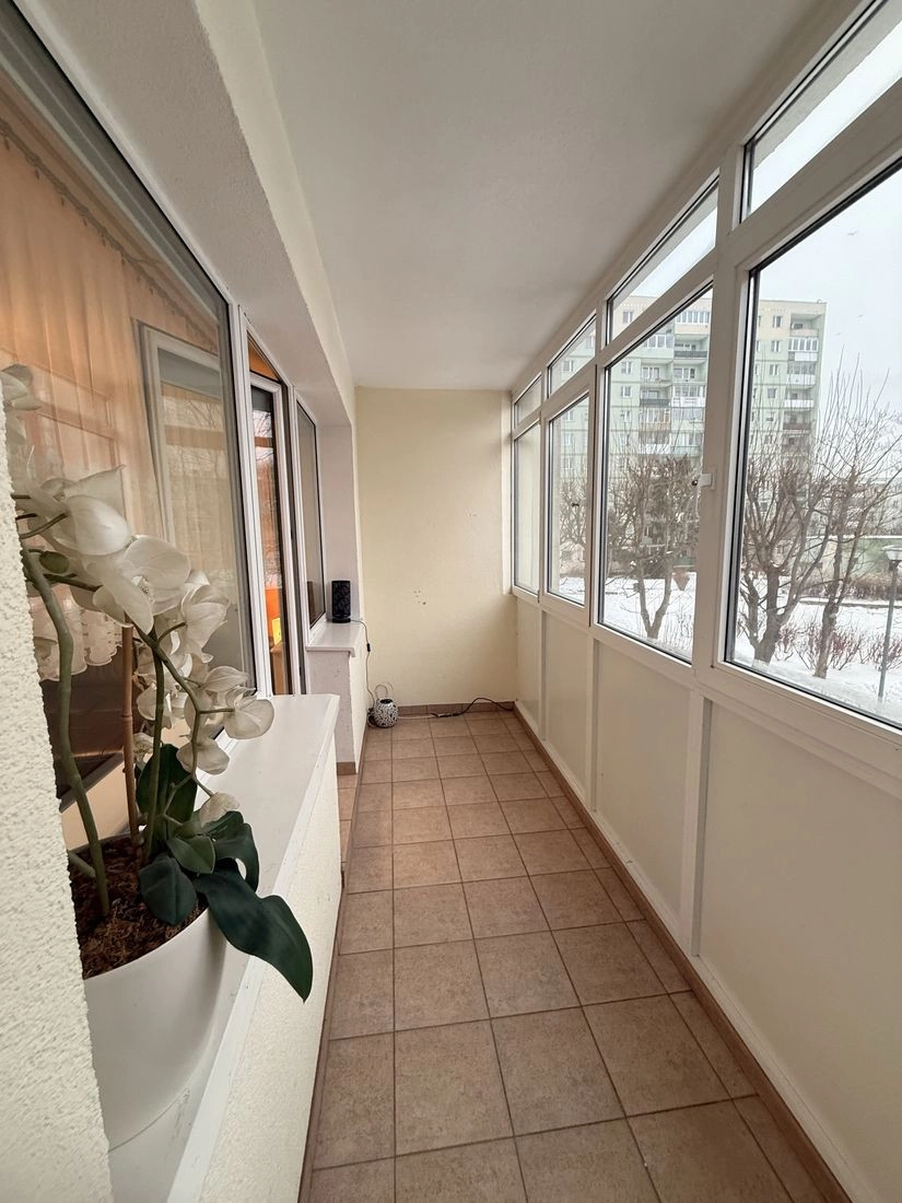 – Z salonu wyjście na loggię ok. 6 m2 – cała oszklona (świeże okna PCV), wyłożona gresem.