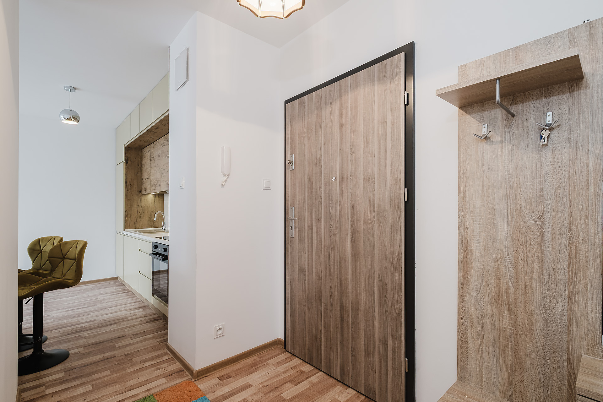 – salonu z aneksem kuchennym o powierzchni 16,14 m2 i wyjściem na balkon o powierzchni 4,86 m2,