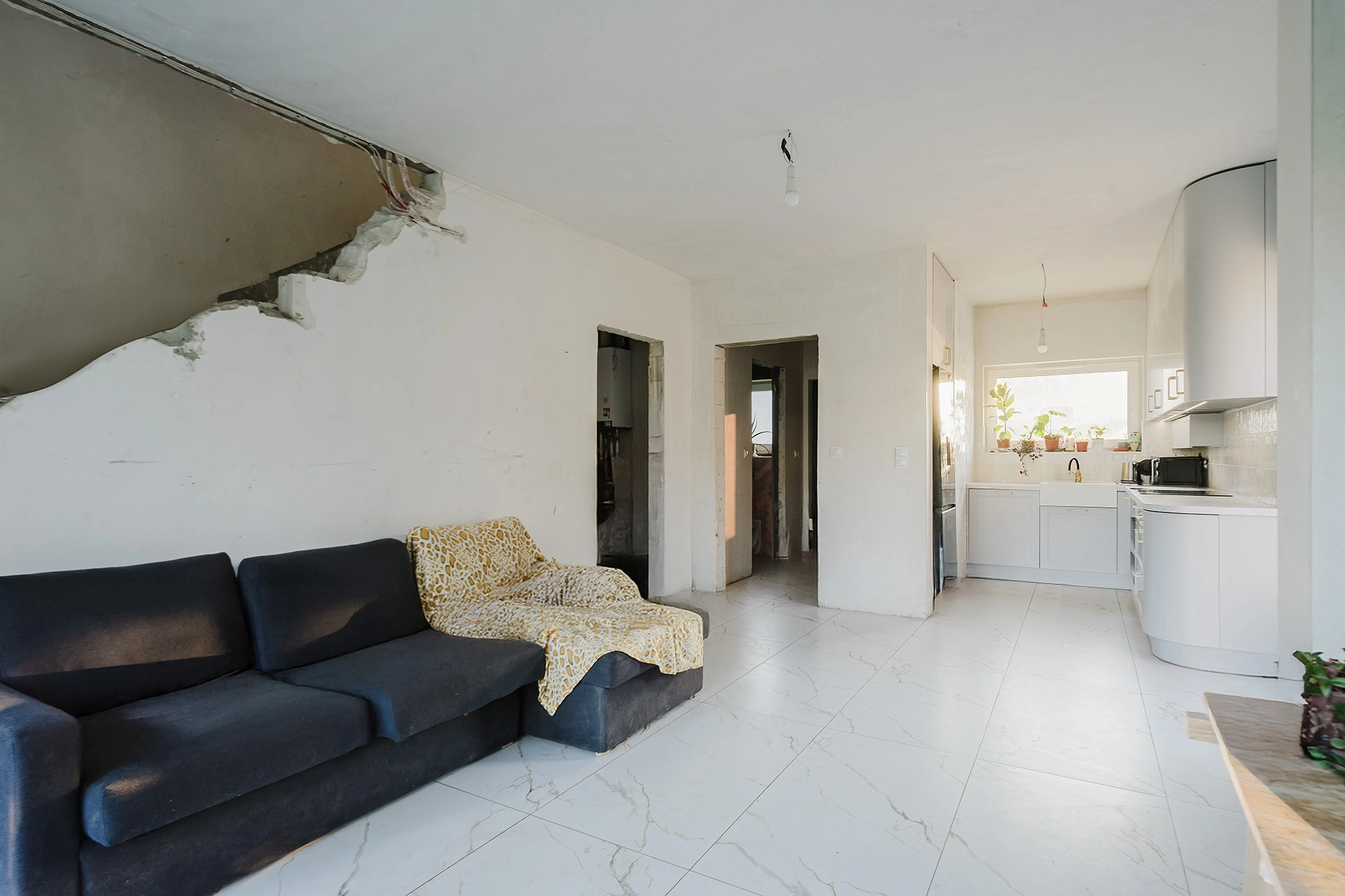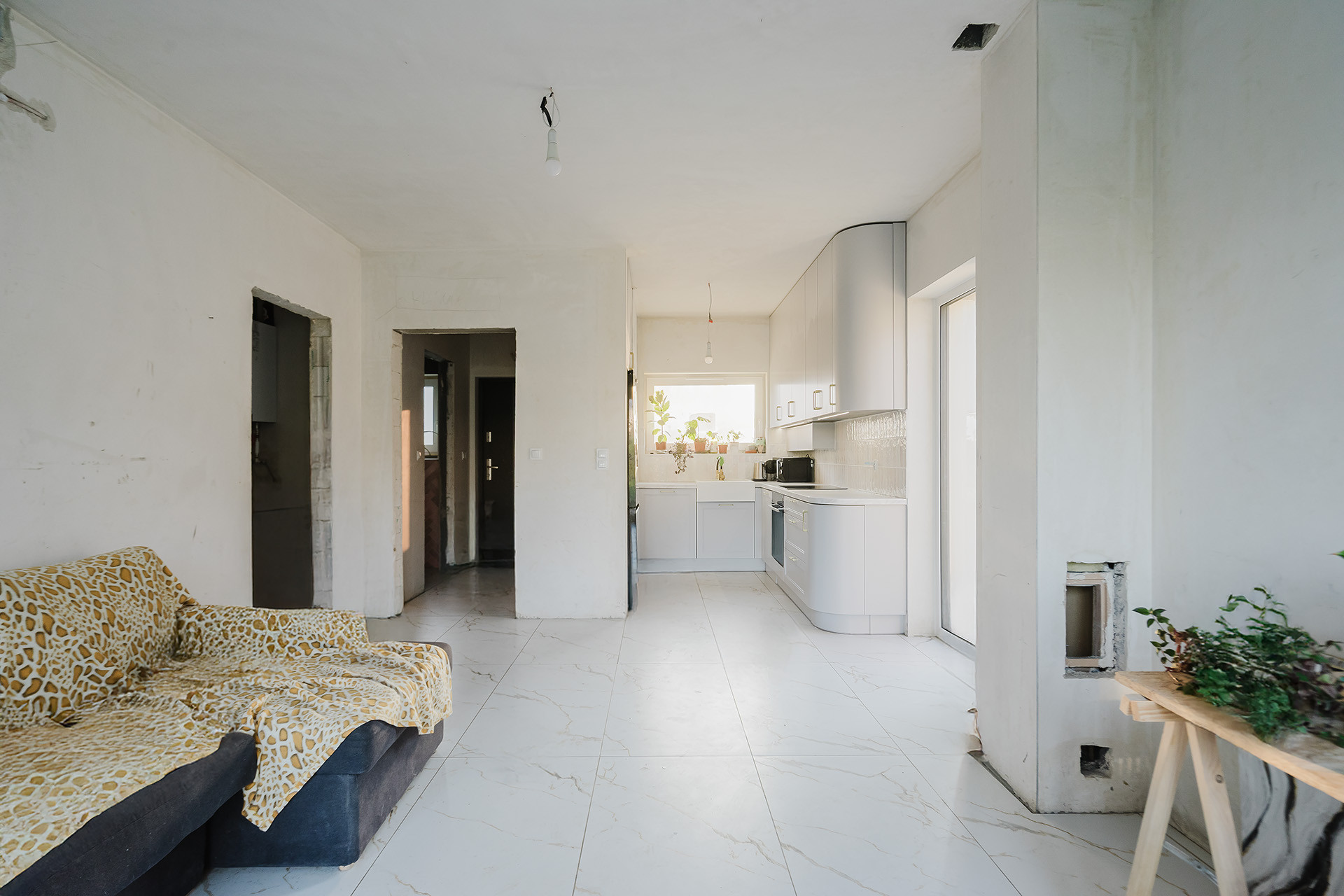 Mieszkanie wykończone częściowo: wykonana całkowicie, wraz ze sprzętem AGD, ładna zabudowa kuchni, podłogi na parterze i piętrze, a także częściowo łazienki.