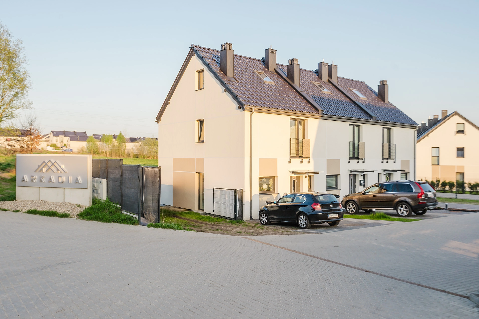 Na sprzedaż mieszkanie/dom w zabudowie bliźniaczej – skrajne mieszkanie o powierzchni użytkowej 67,81 m² a całkowitej ok. 98 m2 (łącznie z poddaszem). Przed wejściem miejsca parkingowe dla samochodów, a od strony salonu duży narożny ogródek. Nieruchomość oddana do użytkowania na początku 2024 roku, wyróżniająca się nowoczesnym i uniwersalną architekturą. To część inwestycji o nazwie Arkadia, w przeważającej już części zakończonej przez dewelopera AMProjekt.