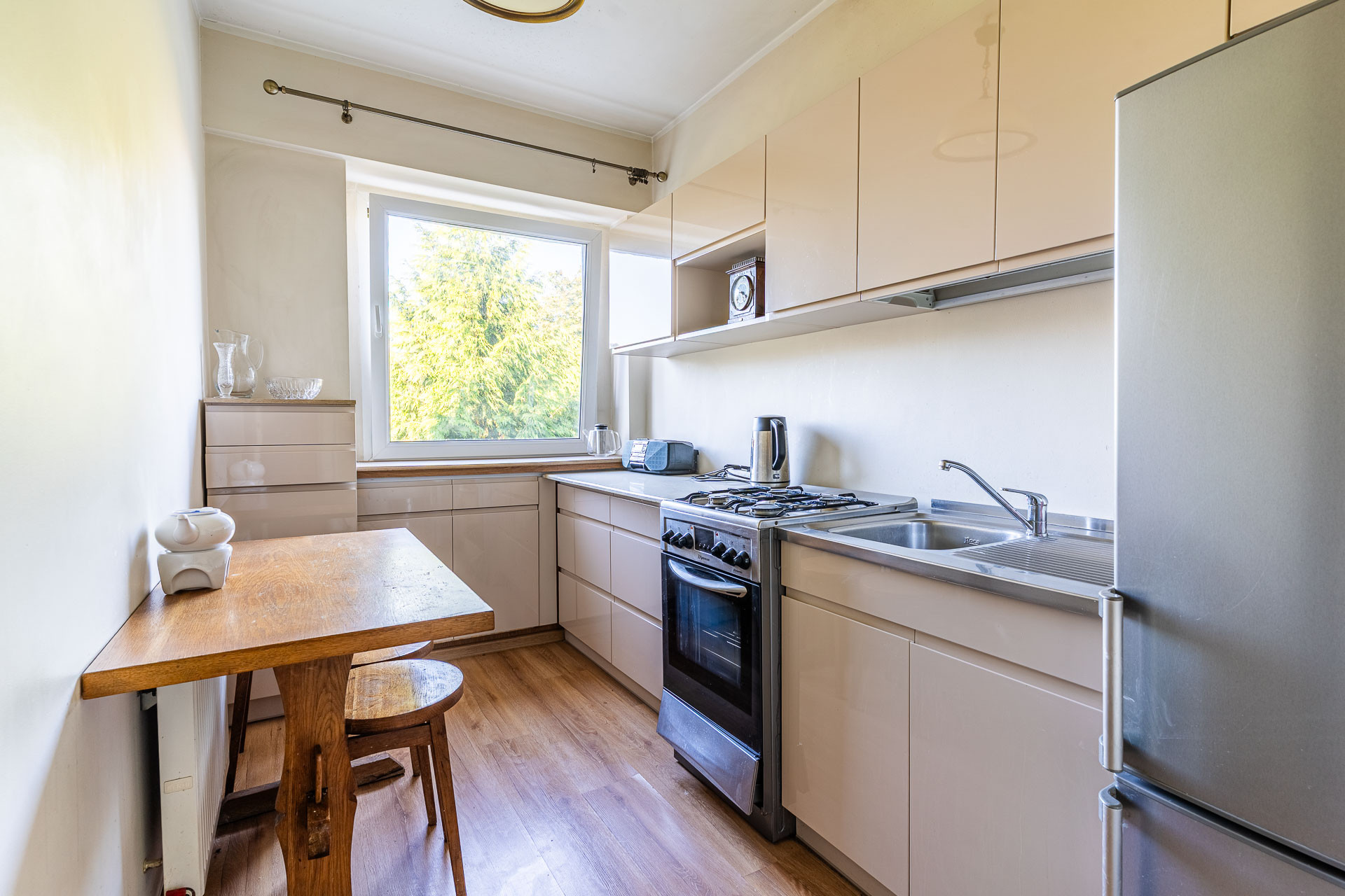 3 oddzielne pokoje, położone na 1-wszym piętrze o doskonałym układzie, dwustronne, widok na zieleń.