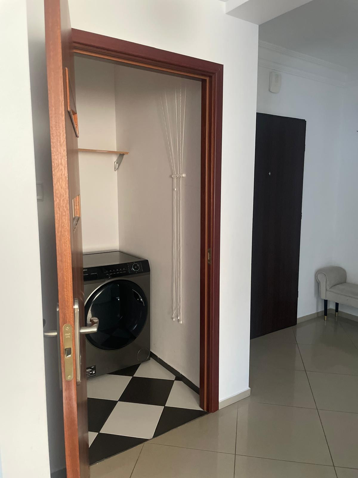 - przestronny hol z pojemną szafą oraz garderoba wyposażona w pralko-suszarkę, co zapewnia wygodę i dodatkowe miejsce do przechowywania.