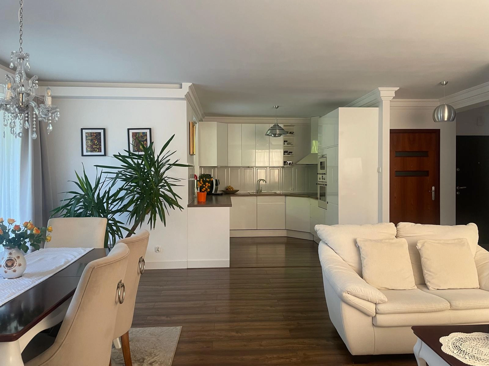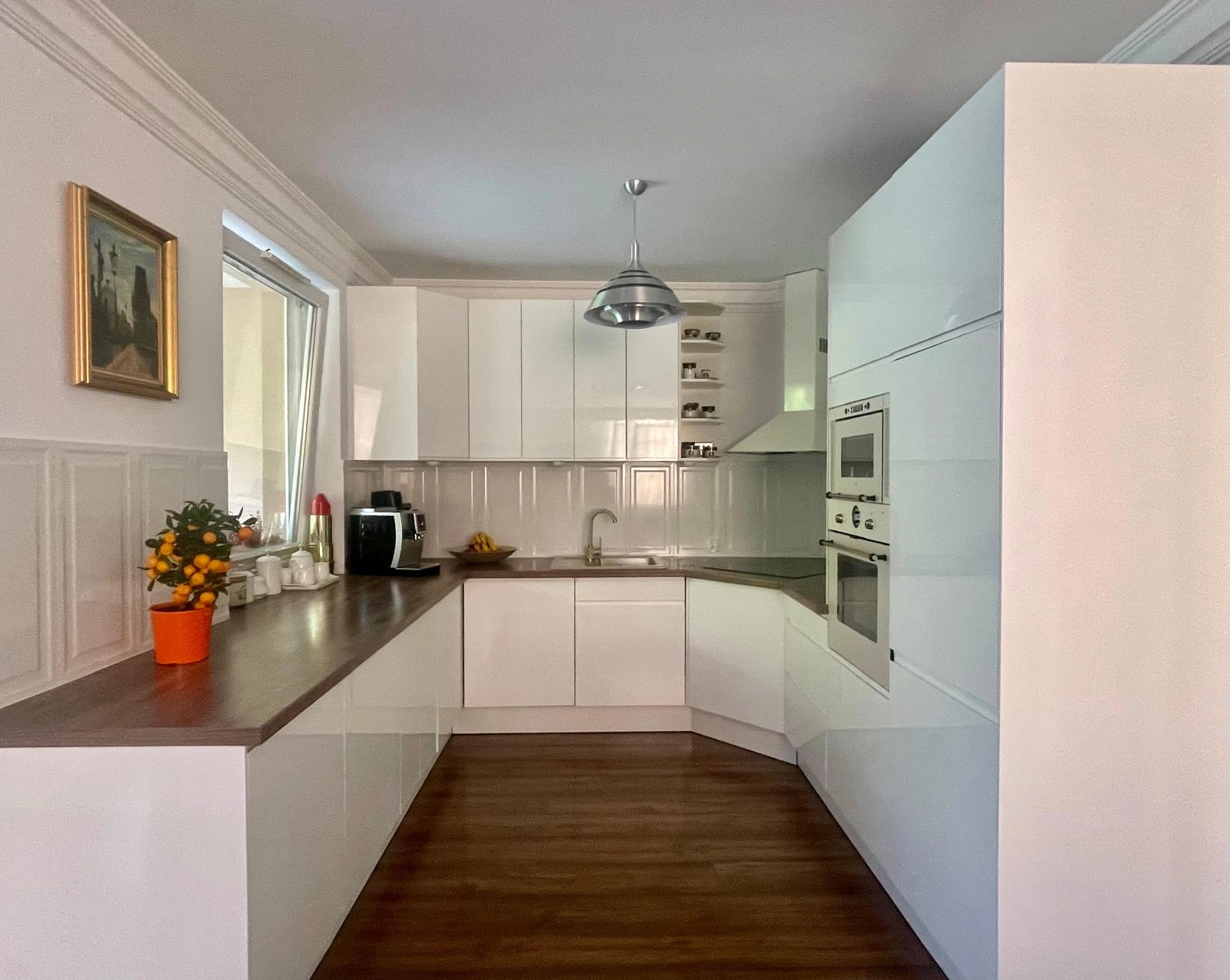 APARTAMENT: został zaprojektowany z myślą o wygodzie i funkcjonalności, z dbałością o każdy detal. Jego układ zapewnia maksymalne wykorzystanie dostępnej przestrzeni, jednocześnie dając wrażenie przestronności i swobody. Mieszkanie jest bardzo słoneczne, z oknami wychodzącymi na trzy strony świata, co sprawia, że wnętrze jest jasne i pełne naturalnego światła przez cały dzień. Jasna, nowoczesna aranżacja w odcieniach bieli, podkreśla przestronność mieszkania i nadaje mu świeżości oraz harmonii.