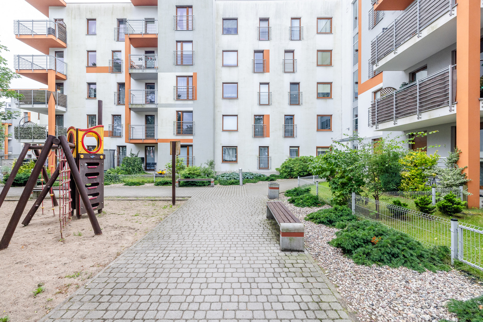 – Przemyślana infrastruktura – tereny zielone, plac zabaw dla dzieci, stojaki rowerowe, miejsca do odpoczynku.