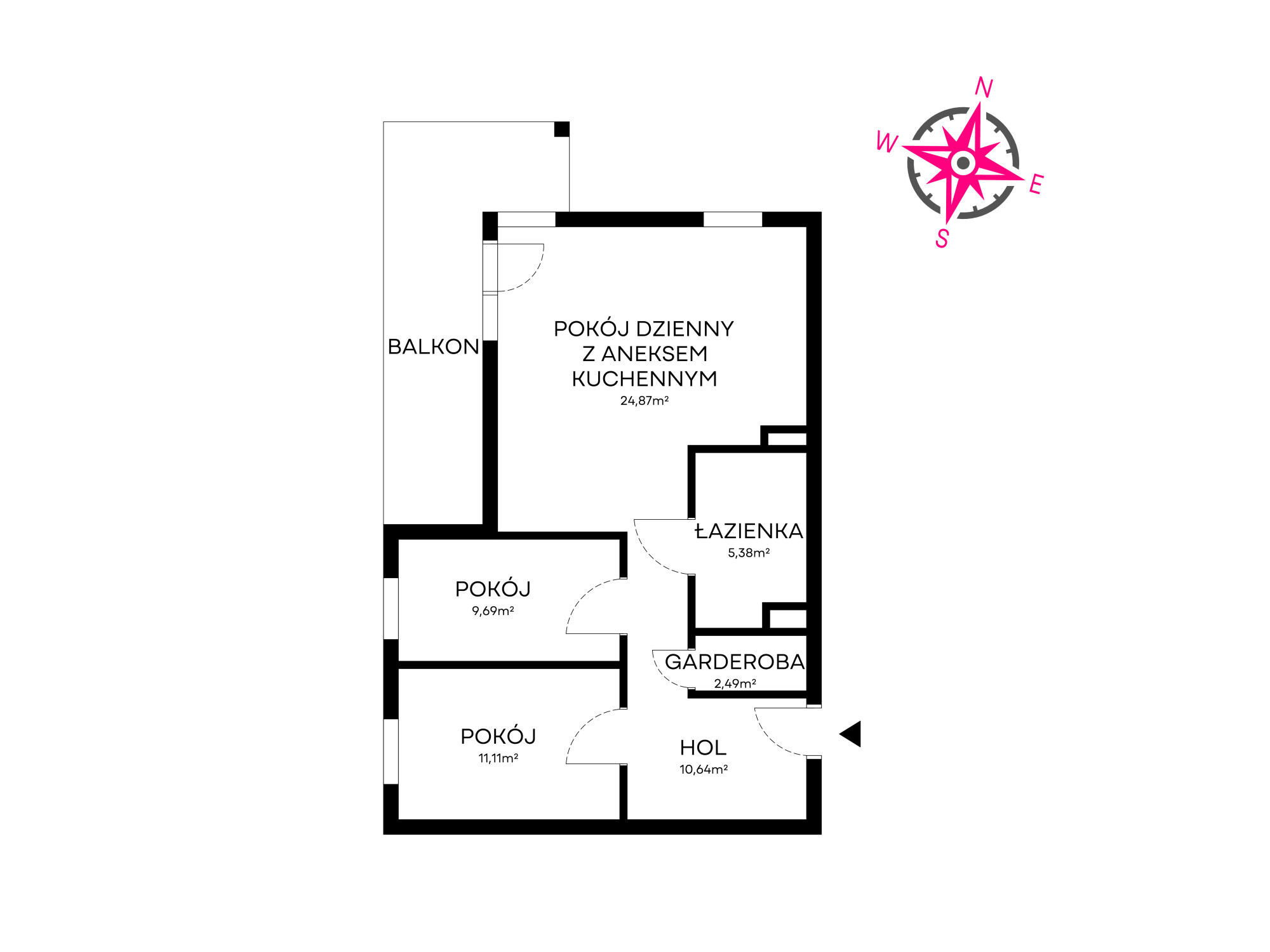 – Dwie sypialnie – 11,11 m² i 9,69 m²
